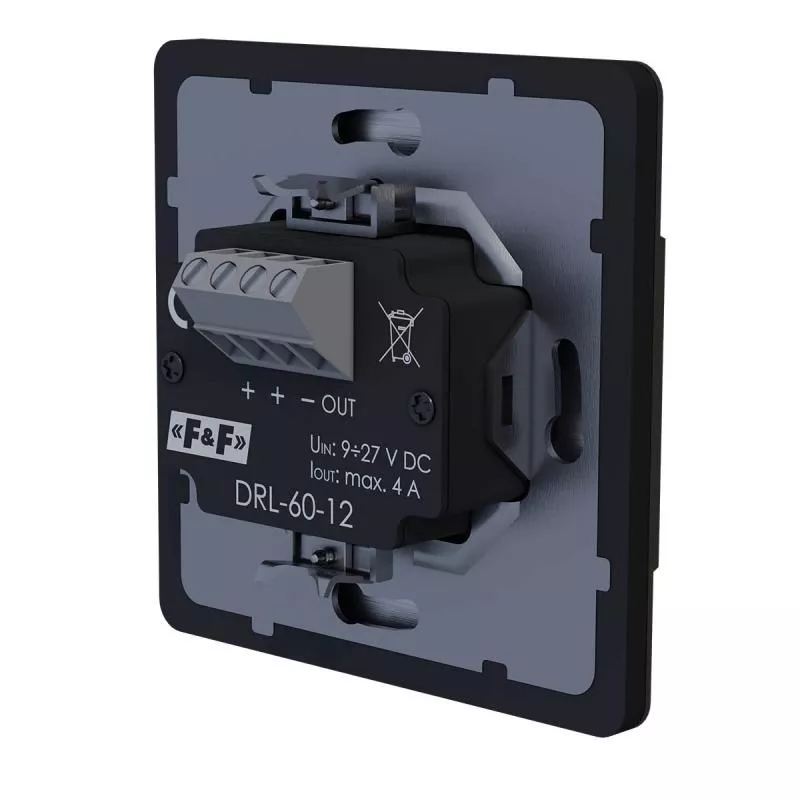 Napięcie zasilania 9÷27 V DC Maksymalny prąd obciążenia 4 A Próg zadziałania - regulowany 2÷500 lx Pole detekcji 0,1÷2,0 m regulowane Czas załączenia odbiornika - regulowany 0÷10 min. Rodzaj detekcji czujnik laserowy ToF Długość fali 940 nm Bezpieczeństwo klasa 1 Przyłącze zaciski śrubowe 2,5 mm² Moment dokręcający 0,4 Nm Pobór mocy 0,3 W Temperatura pracy -10÷45°C Wymiary zewnętrzne 80×80×6,5 mm; wewnętrzne (puszka) ø60 mm, głębokość 25 mm Montaż podtynkowy Stopień ochrony IP30