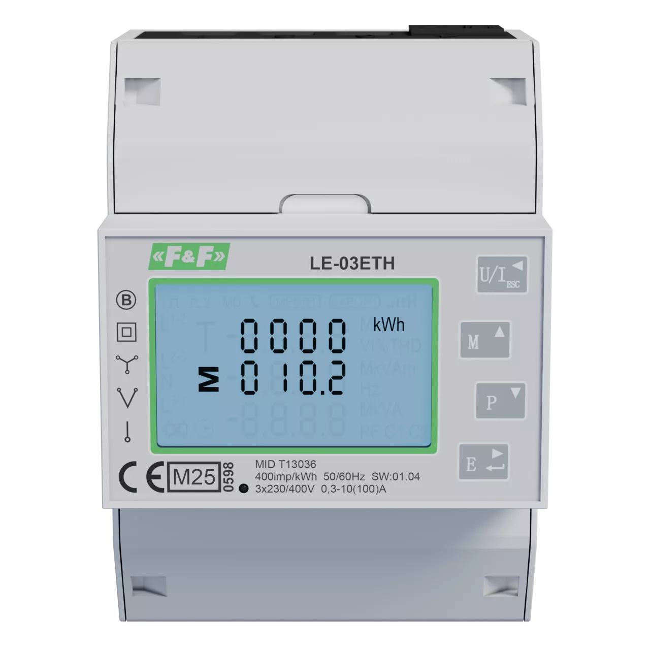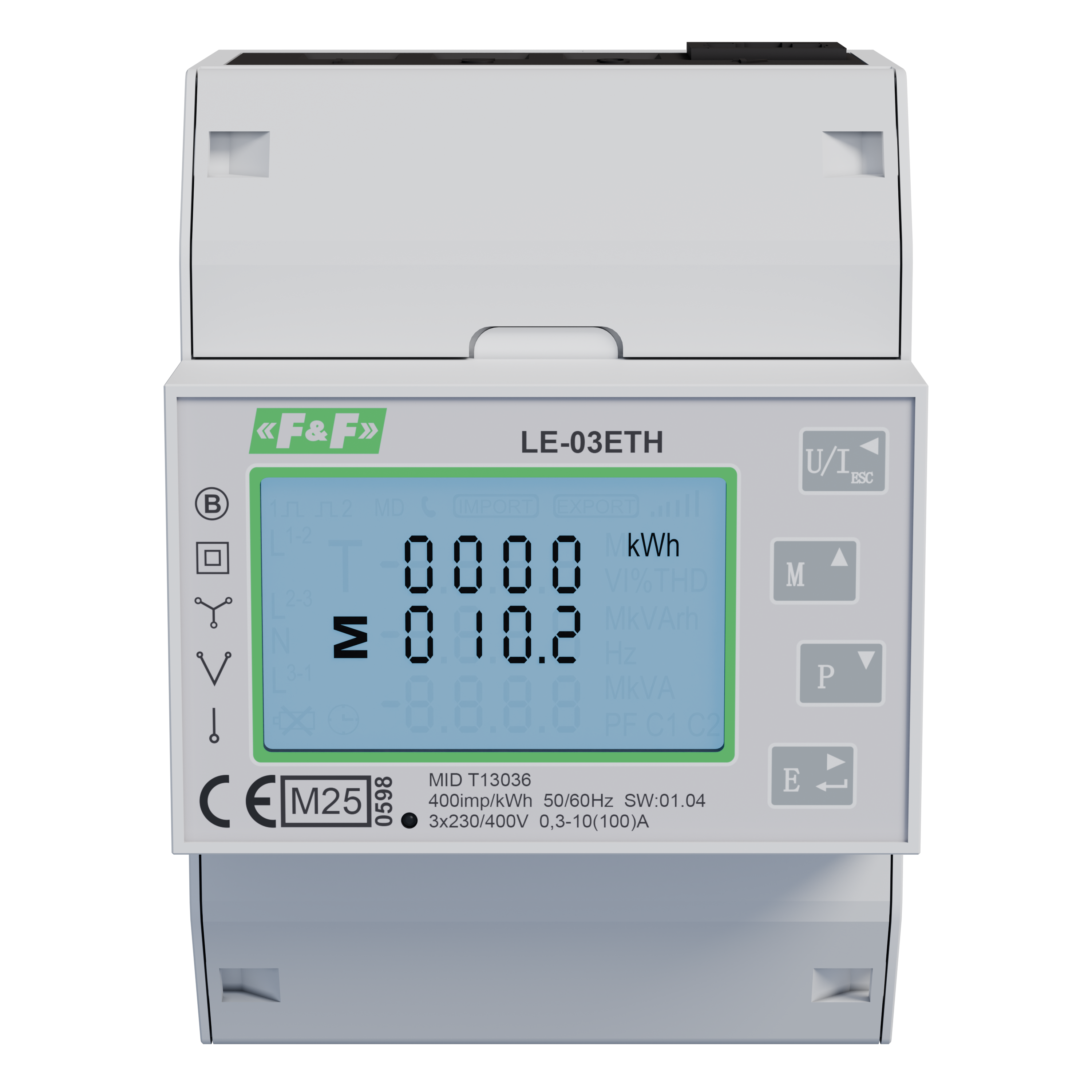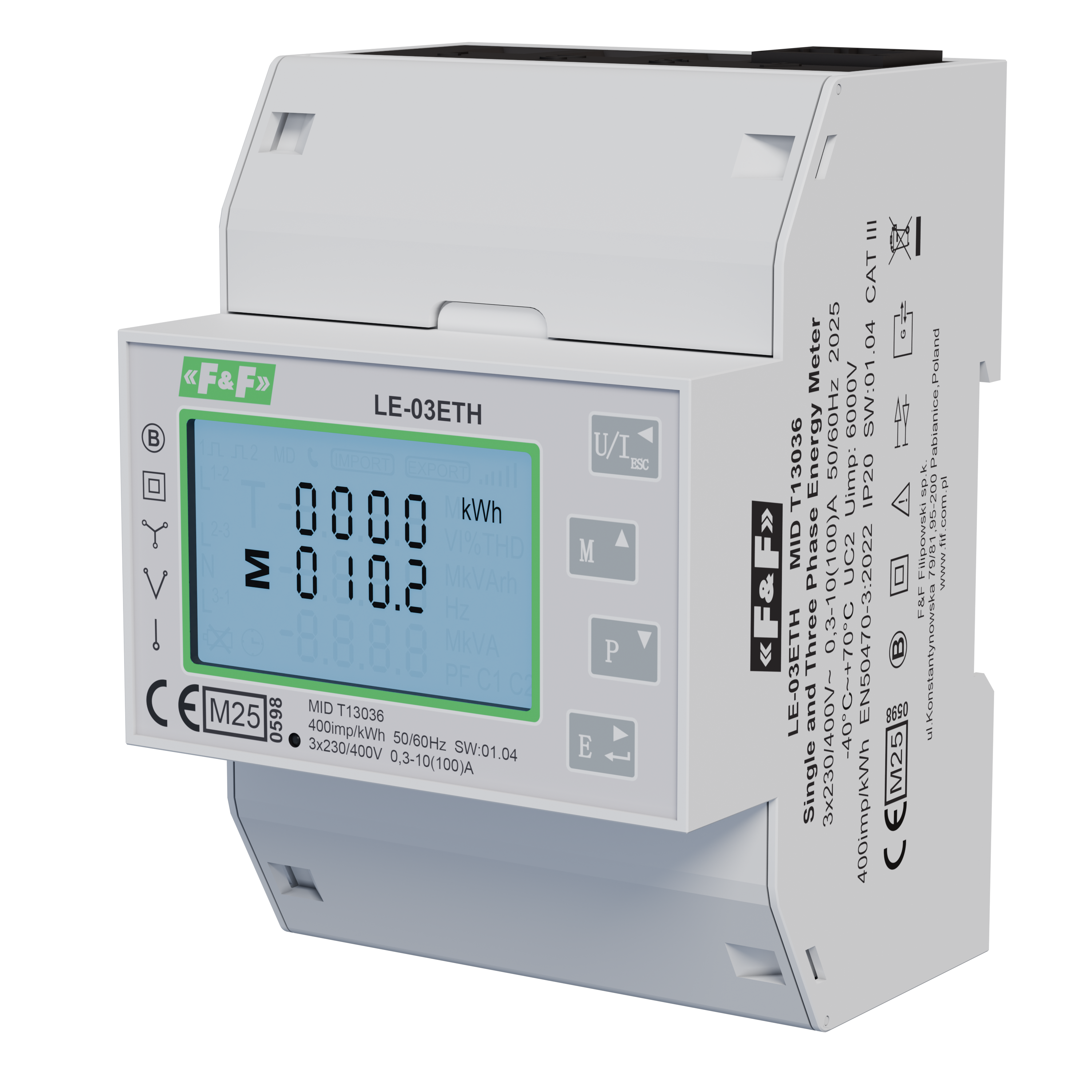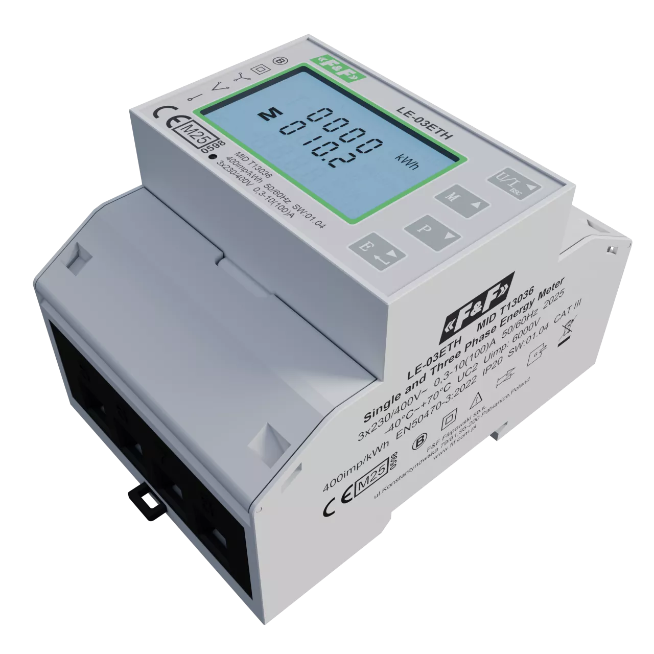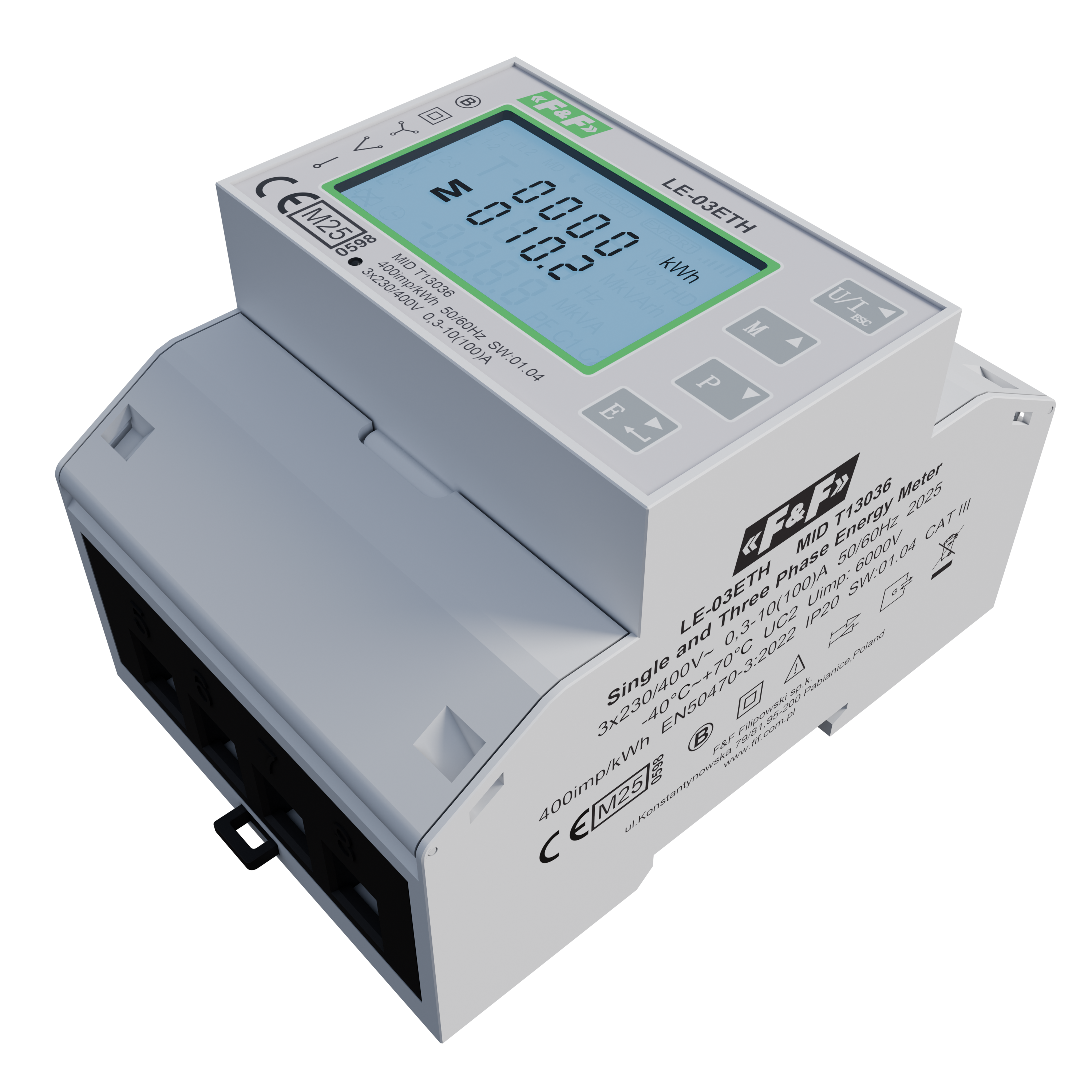 Trójfazowy licznik, pomiar bezpośredni 100A, komunikacja Modbus TCP, MID