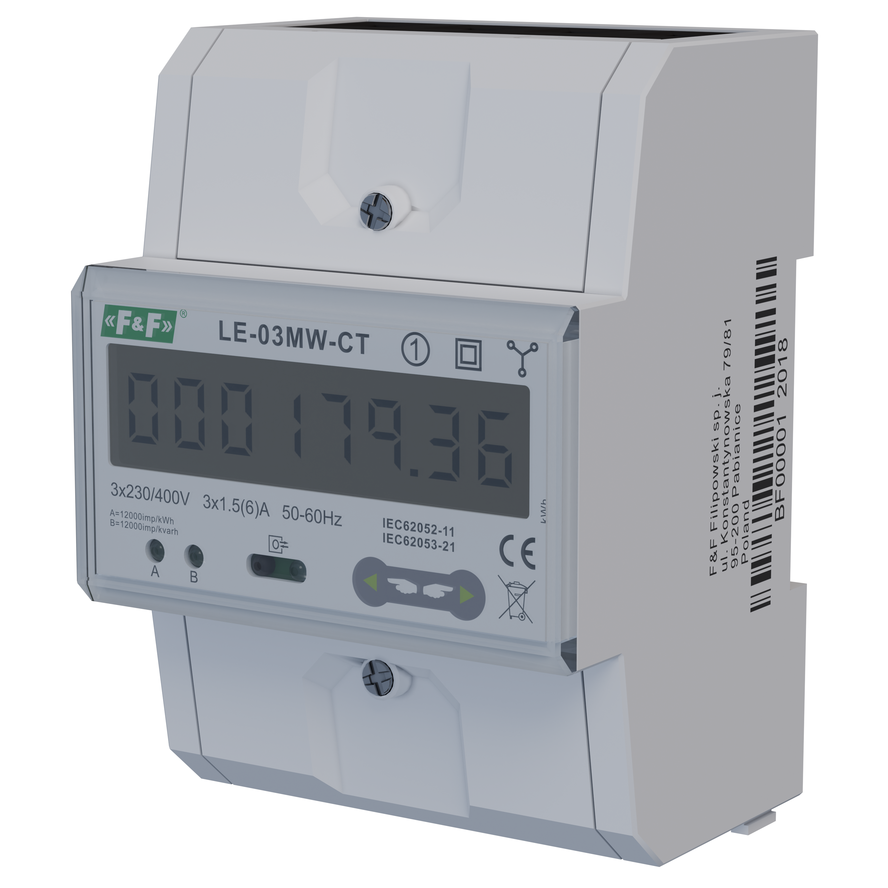 Dwutaryfowy licznik energii elektrycznej, 3-fazowy, 2-kierunkowy z Modbus RTU, do pomairu półpośredniego