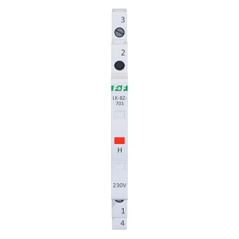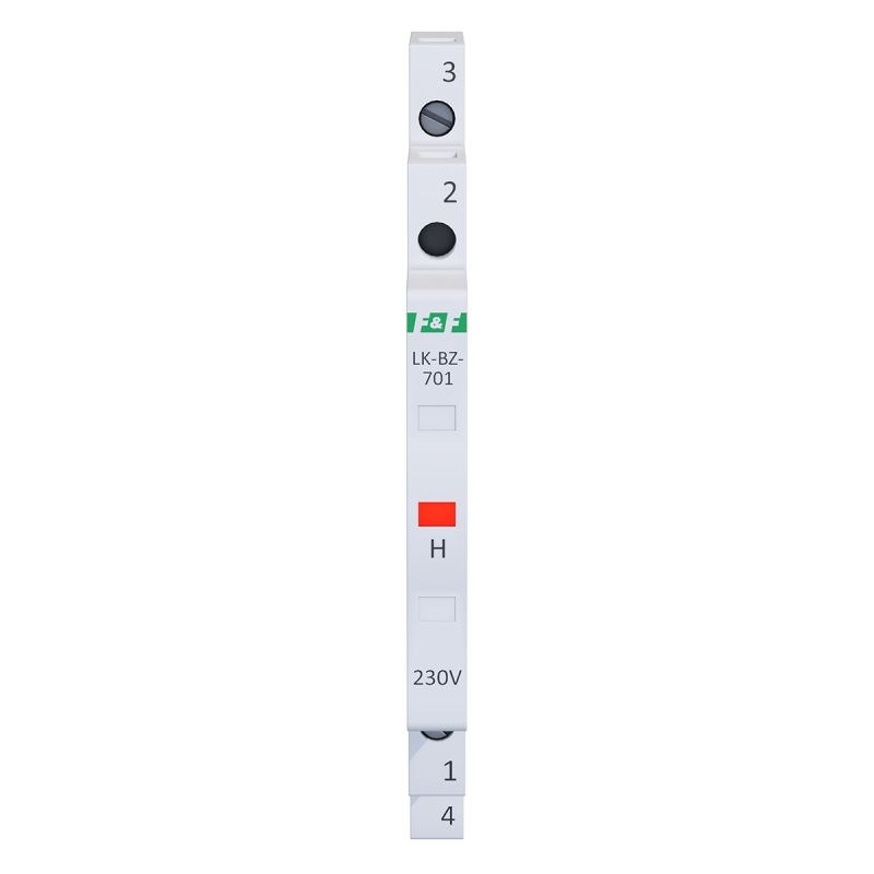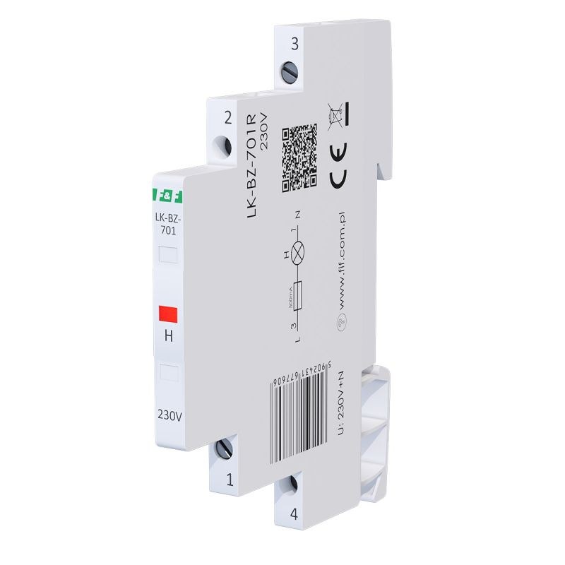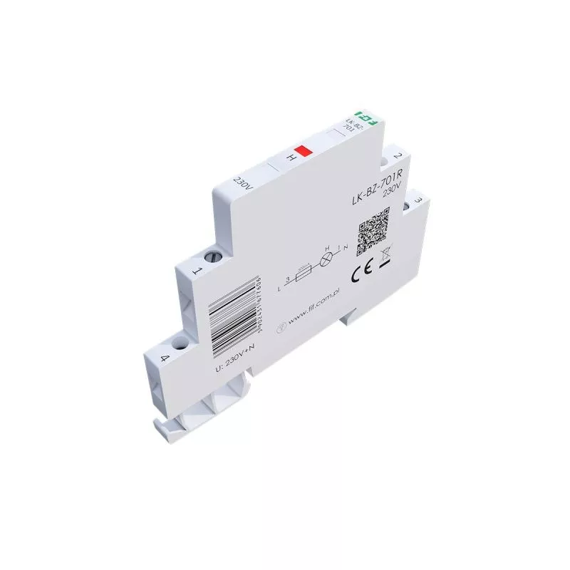 Napięcie zasilania 230 V+N Kontrola zasilania 1 × LED (8×4 mm) Kolory LED 1 x czerwona Prąd znamionowy 1 mA/kanał Przyłącze zaciski śrubowe 2,5 mm² Moment dokręcający 0,4 Nm Pobór mocy 0,15 W/kanał Rodzaj bezpiecznika szybki bezpiecznik topikowy Bezpiecznik - prąd znamionowy 500 mA/kanał Bezpiecznik - zdolność wyłączania 100 A @250 V AC Temperatura pracy -30÷50°C Wymiary 1/3 modułu (6,2 mm) Montaż na szynie 35 mm Stopień ochrony IP20