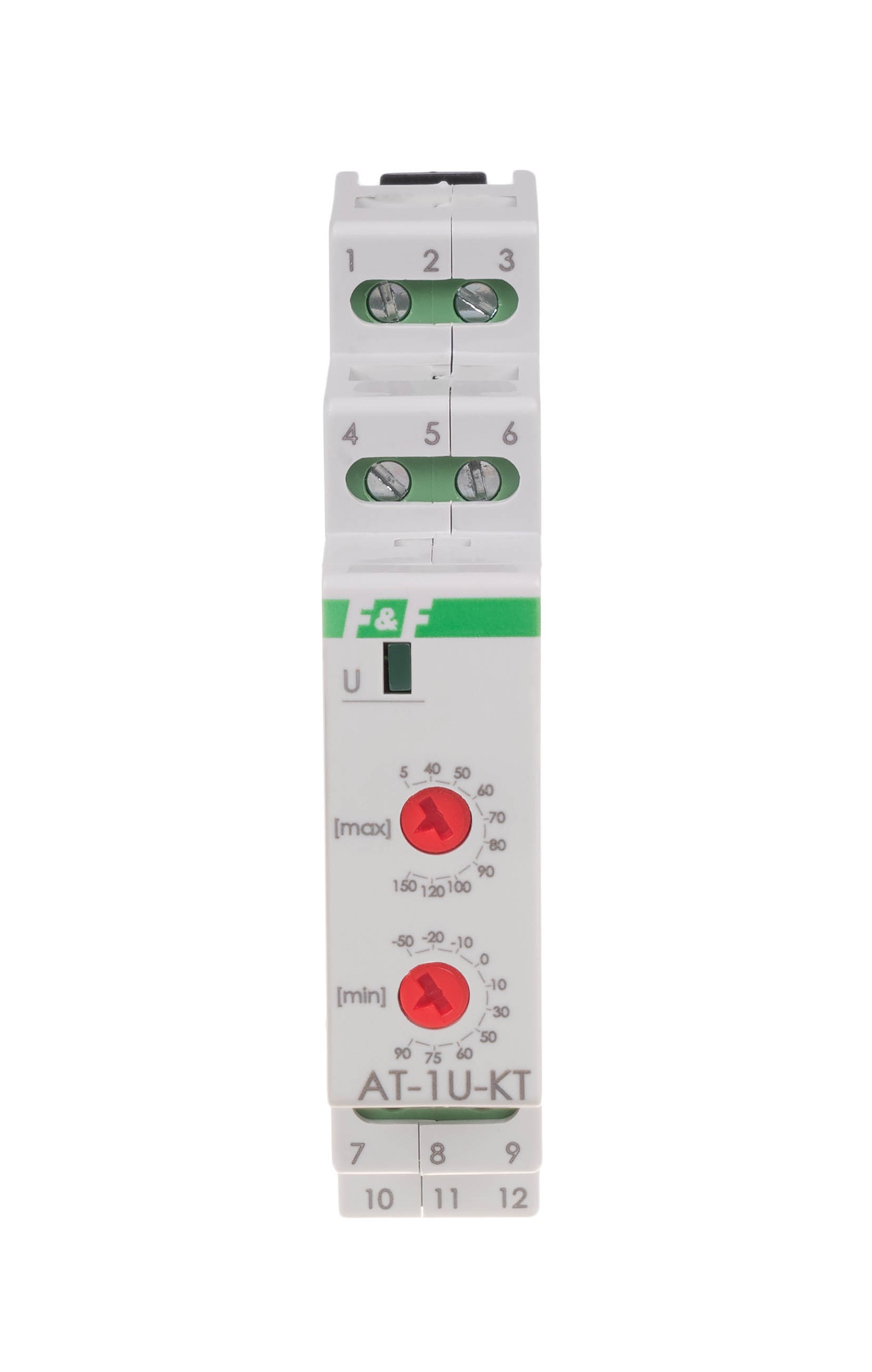 zasilanie AT-1I-KT 9÷30 V DC AT-1U-KT 12÷30 V DC zakres pomiarowy -50÷150°C zakres nastaw temperatura minimalna -50÷95°C temperatura maksymalna 5÷150°C sygnał wyjściowy AT-1I-KT 4÷20 mA AT-1U-KT 0÷10 V błąd przetwarzania ±1°C przewód sygnałowy 3 AT-1I-KT <300 m AT-1U-KT <20 m przewód czujnikowy <50 m sonda temperatury RT, RT2, KTY81-210 pobór mocy 0,8 W temperatura pracy -25÷50°C przyłącze zaciski śrubowe 2,5 mm² moment dokręcający 0,4 Nm wymiary 1 moduł (18 mm) montaż na szynie TH-35 stopień ochrony IP20