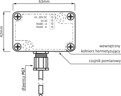 Przetwornik wilgotności i temperatury, MODBUS RTU, 9-30V, 0-100%RH,
