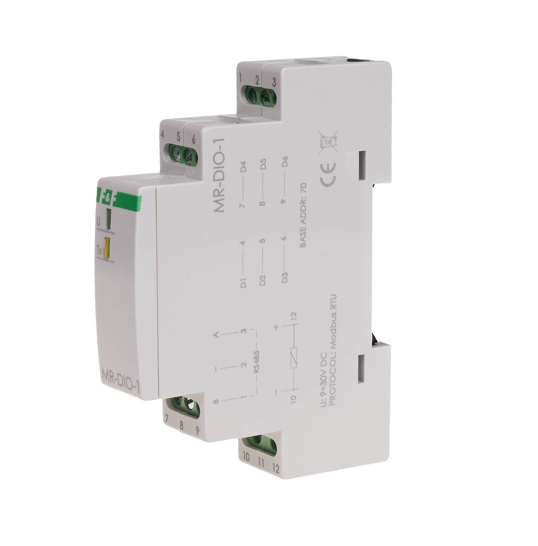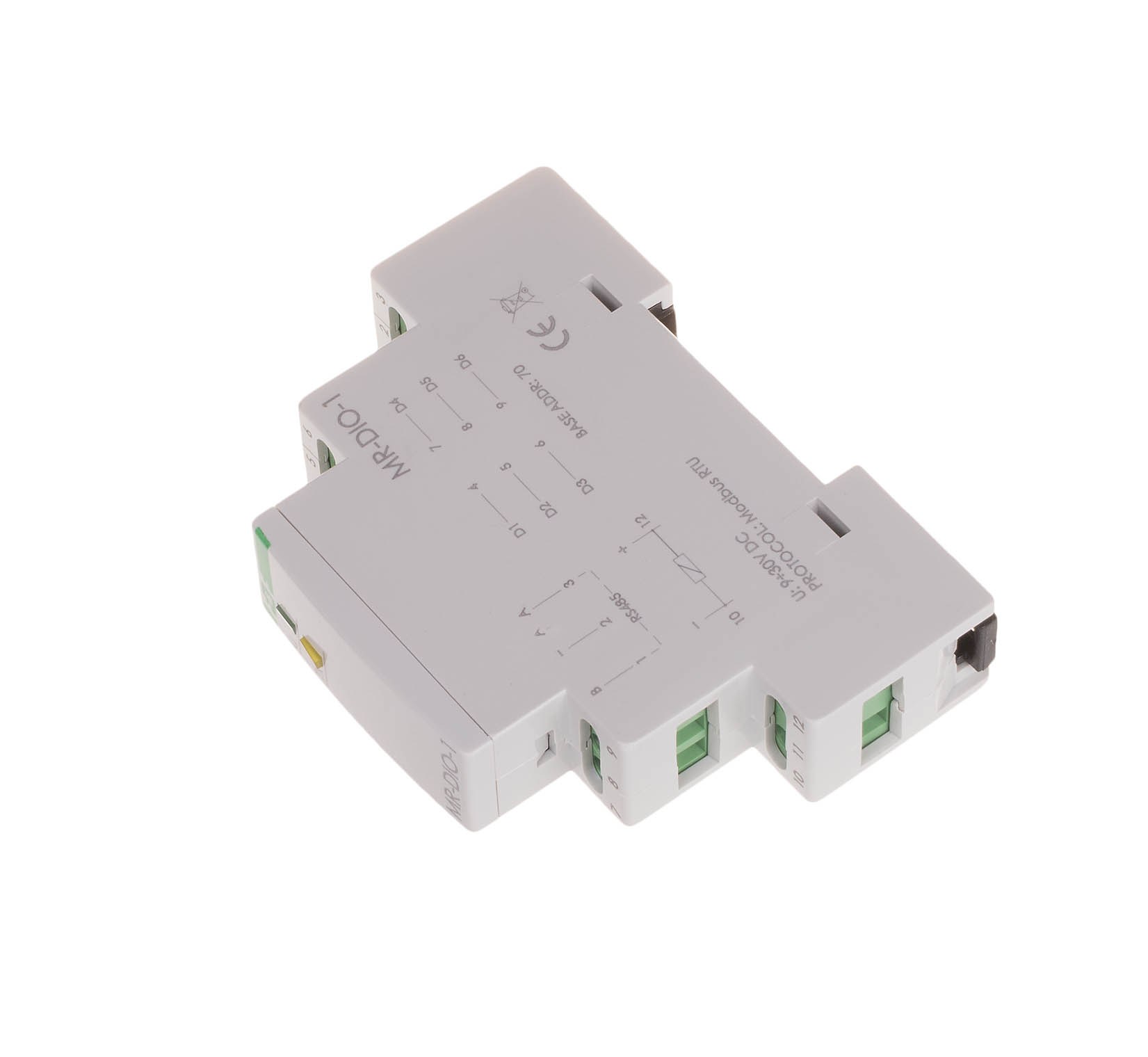 Napięcie zasilania 9÷30 V DC Porty RS-485 Protokół komunikacyjny MODBUS RTU Prędkość - ustawiana 1200÷115200 bit/s Bity danych 8 Bity stopu 1/2 Bity parzystości EVEN / ODD / NONE Adres 1÷247 Maksymalny pobór prądu 25 mA Ilość kontaktów DI/DO 6 Napięcie kontaktu 50 V Prąd roboczy kontaktu - stały 100 mA Prąd roboczy kontaktu - impulsowy (20%) 200 mA Przyłącze zaciski śrubowe 2,5 mm² Moment dokręcający 0,4 Nm Pobór mocy 0,5 W Temperatura pracy -20÷50°C Wymiary 1 moduł (18 mm) Montaż na szynie 35 mm Stopień ochrony IP20