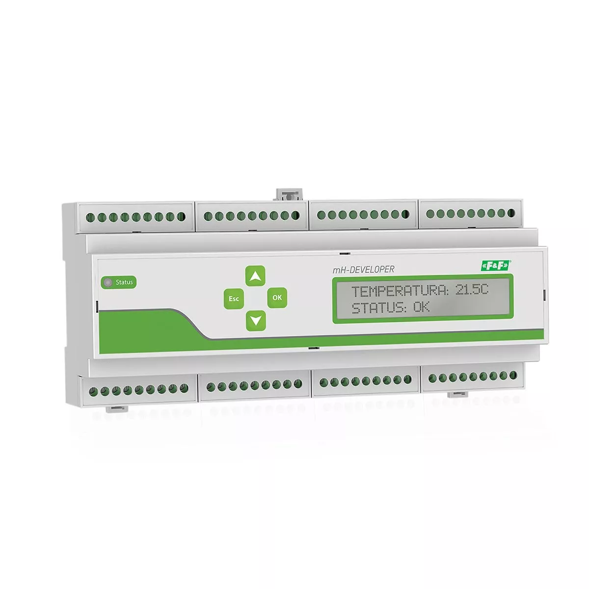 zasilanie 20÷26 V DC maksymalny pobór prądu 0,5 A ilość wejść włącz/wyłącz 12 temperatura 9 ilość wyjść włącz/wyłącz 12 zawory 8 obciążalność wyjść włącz/wyłącz (AC-1) 16 A obciążalność wyjść zaworów (AC-1) 0,5 A interfejs CAN TAK (F&Home) interfejs Modbus TAK (Modbus RTU) interfejs LAN TAK (10/100 Mbps) temperatura pracy -25÷50°C przyłącze zaciski śrubowe 2,5 mm² moment dokręcający 0,4 Nm wymiary 12 modułów (212 mm) montaż na szynie TH-35 stopień ochrony IP20