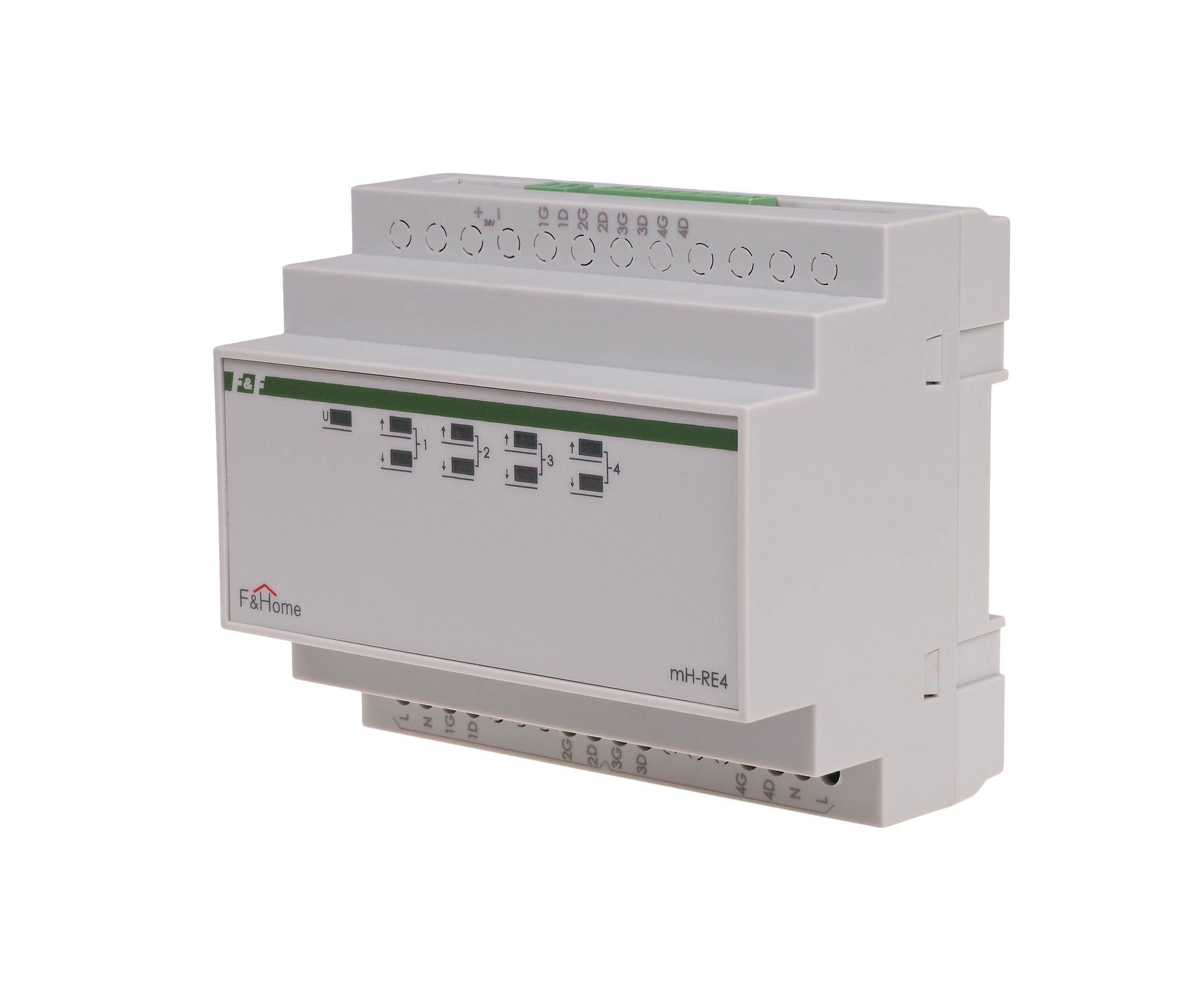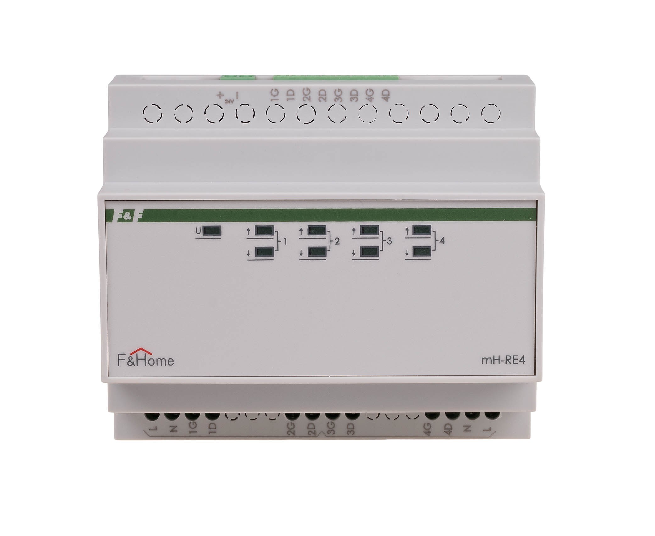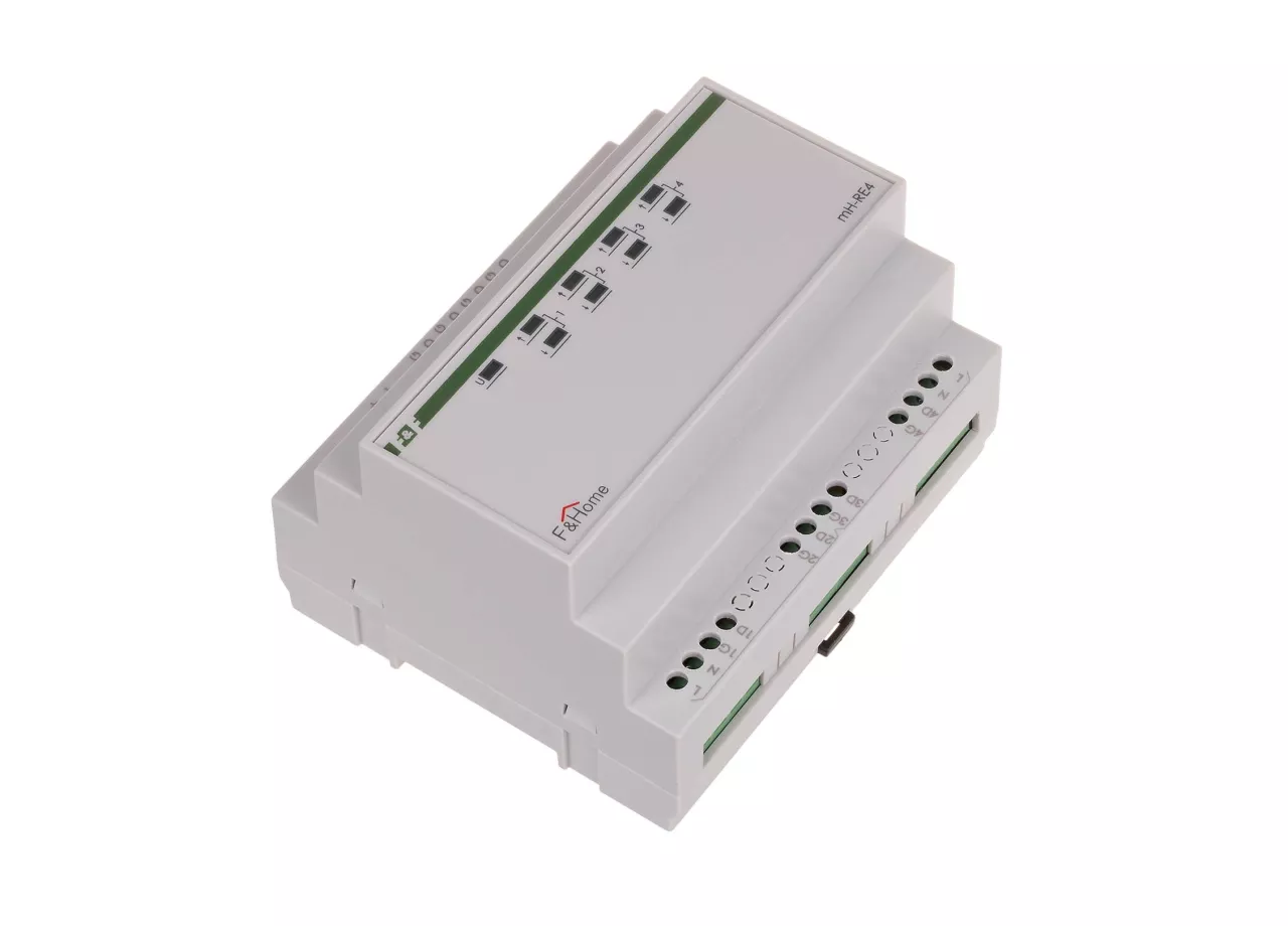 Przekaźniki mH-RE4 są dedykowanymi elementami wykonawczymi sterującymi pracą urządzeń silnikowych (w szczególności rolet). Korzyści wynikające ze stosowania przekaźników dedykowanych to: Zabezpieczenie przed jednoczesnym załączeniem kierunku góra i dół. Zabezpieczenie przed natychmiastową zmianą kierunku (przerwa czasowa). Układ gaszący iskrzenia wydłużający żywotność styków przekaźników oraz eliminujący zakłócenia na sieci. Diody LED na czole urządzenia pokazujące aktualny stan. Obciążalność elementów wykonawczych wynosi 8A. Moduły przekaźników montowane są w rozdzielni i zajmują pole 6 modułów. Zasilanie modułów: 24V.