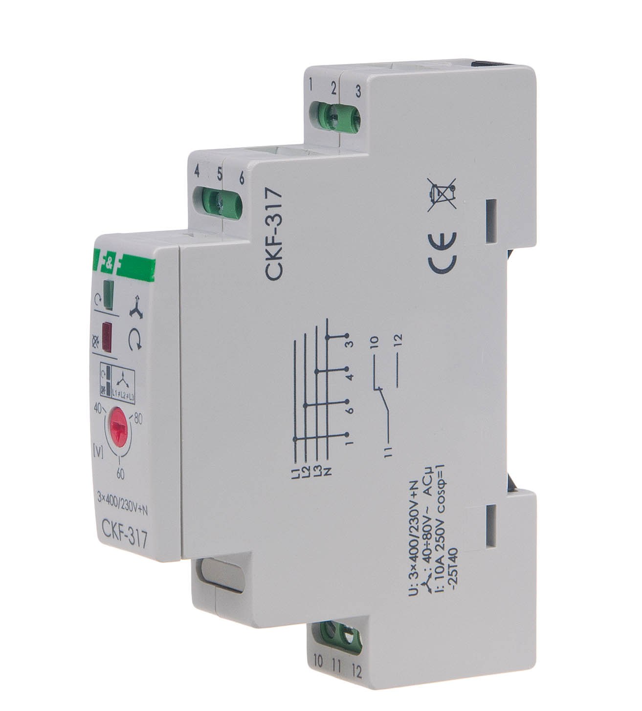 Mikroprocesorowy czujnik kolejności i zaniku faz z regulowanym progiem asymetrii, montaż na szynie DIN,True RMS CKF-317-TRMS