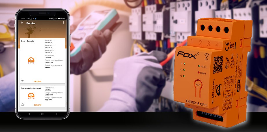 Monitor energii elektrycznej z wbudowaną anteną wewntrzną WI-FI 3F+N, WI-MEF-3-OPTI-40