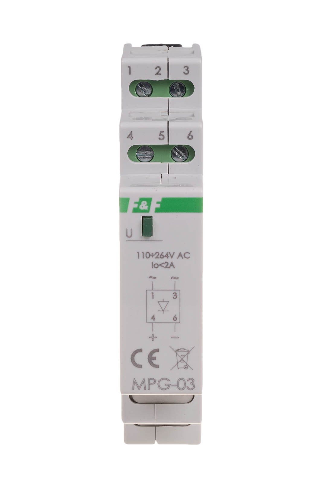 Napięcie zasilania 110÷264 V AC Maksymalny prąd obciążenia 2 A Sygnalizacja napięcia wyjściowego LED zielona Przyłącze zaciski śrubowe 2,5 mm² Moment dokręcający 0,4 Nm Temperatura pracy -25÷40°C Wymiary 1 moduł (18 mm) Montaż na szynie 35 mm Stopień ochrony IP20