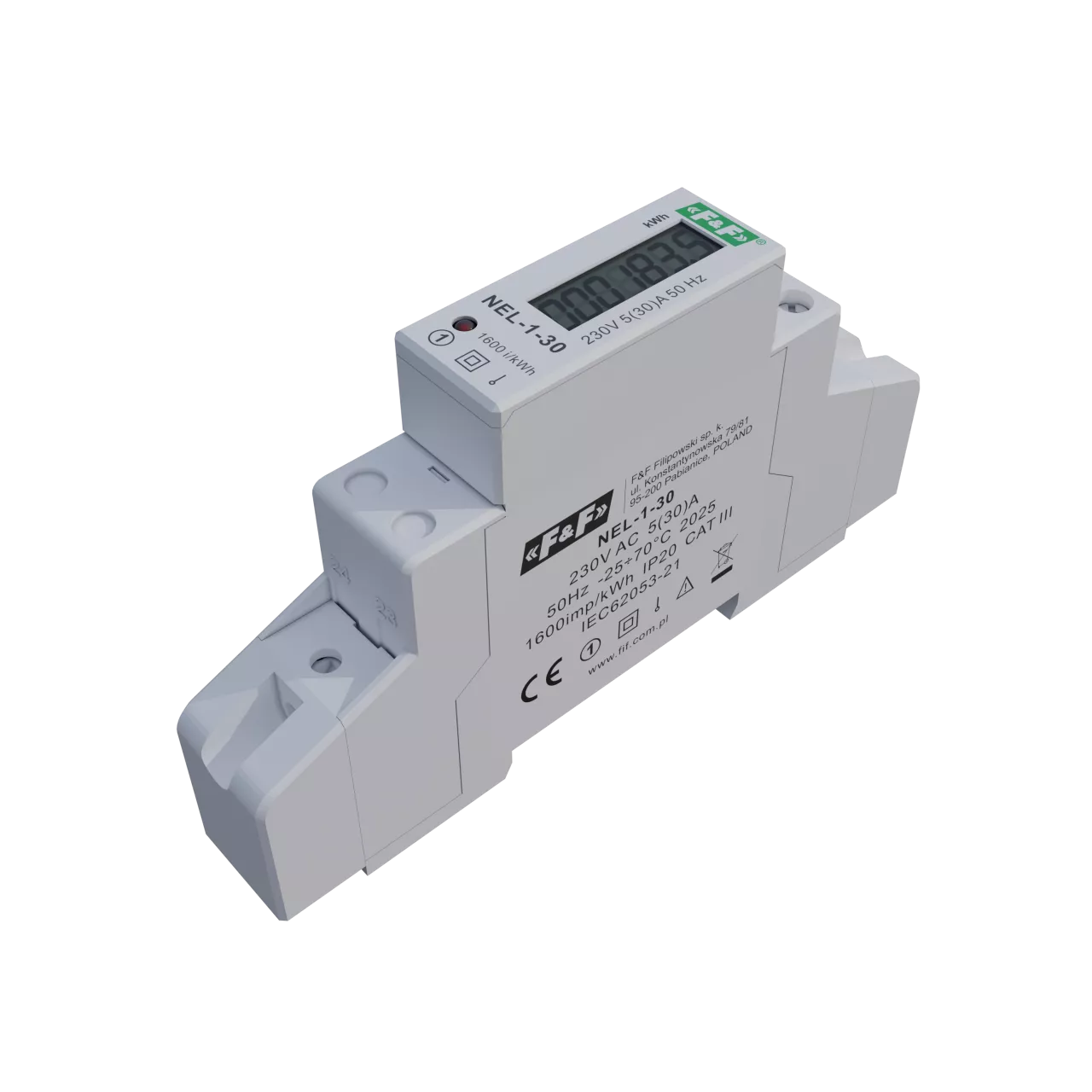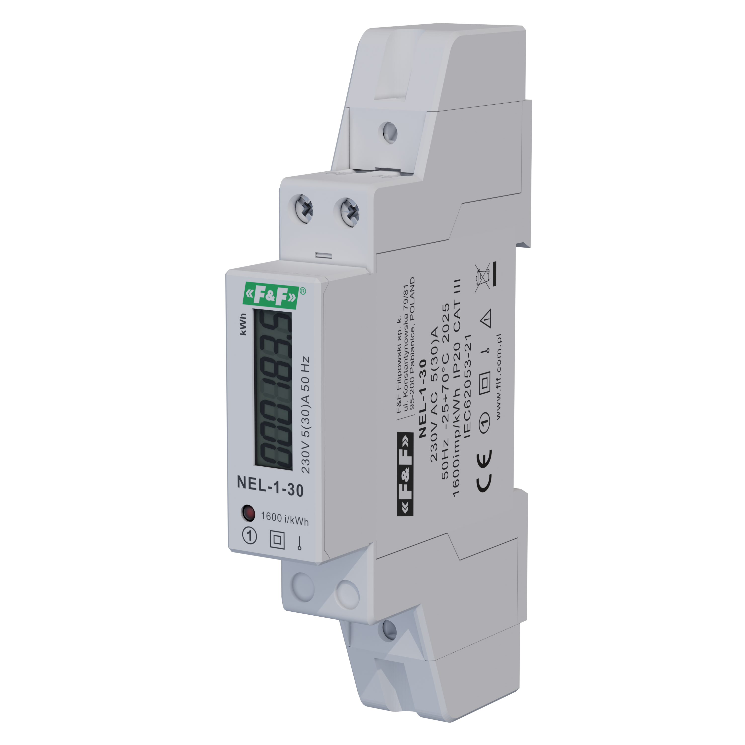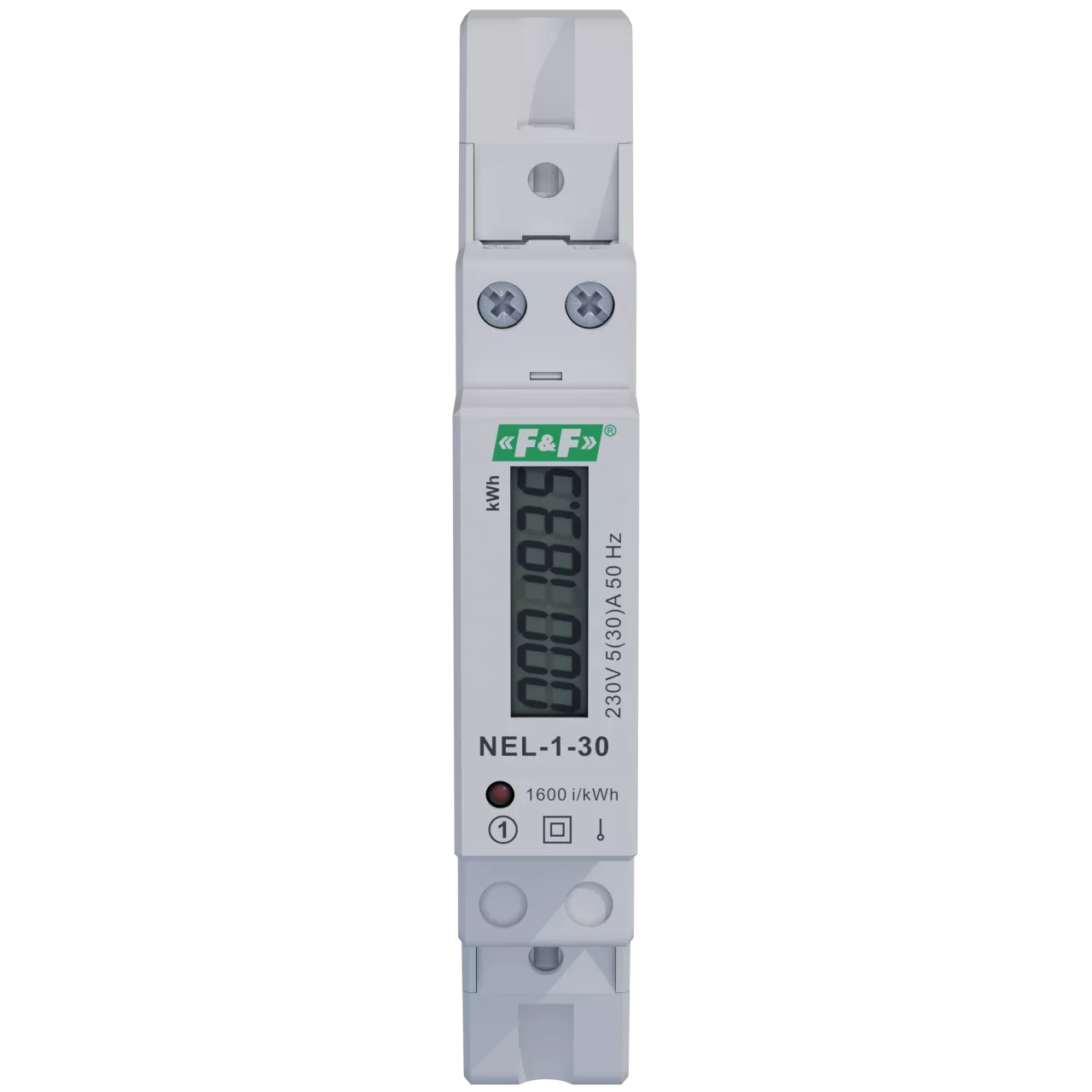 Wskaźnik zużycia energii elektrycznej 1-fazowy, 230 VAC, 30 A, 1 moduł