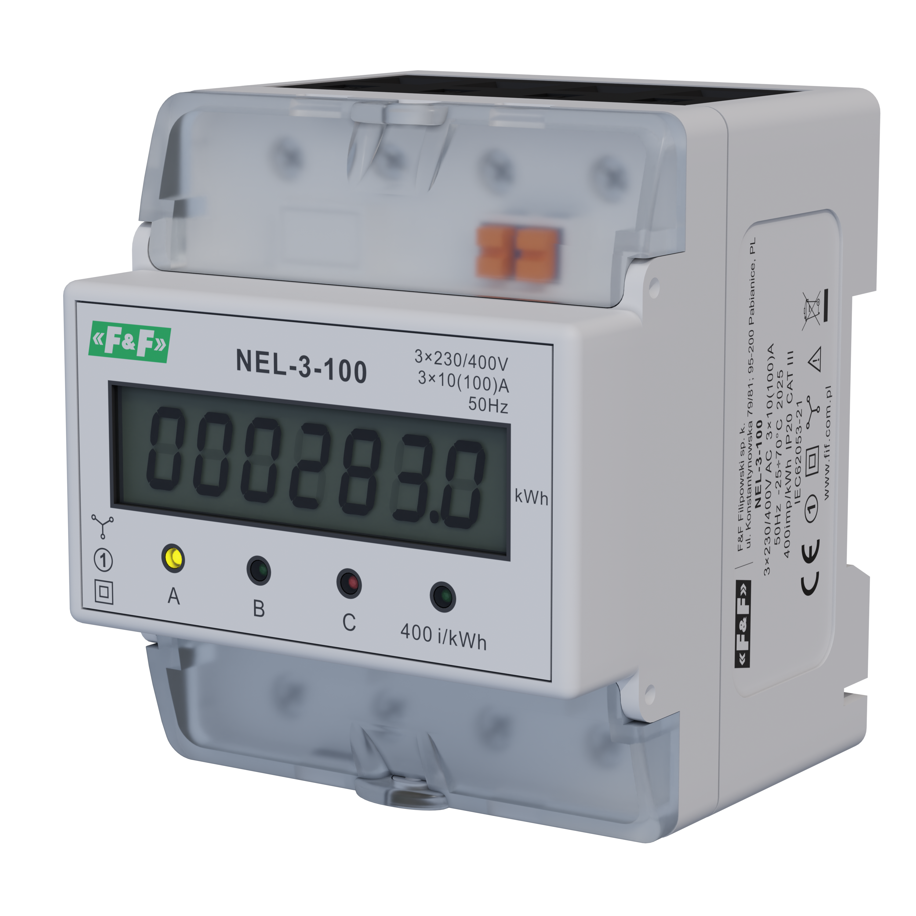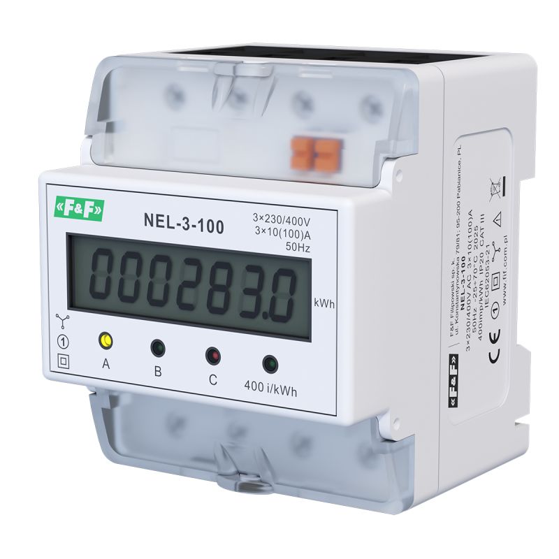 Wskaźnik zużycia energii elektrycznej 3-fazowy, 3x400 VAC, 100 A, 4 moduły