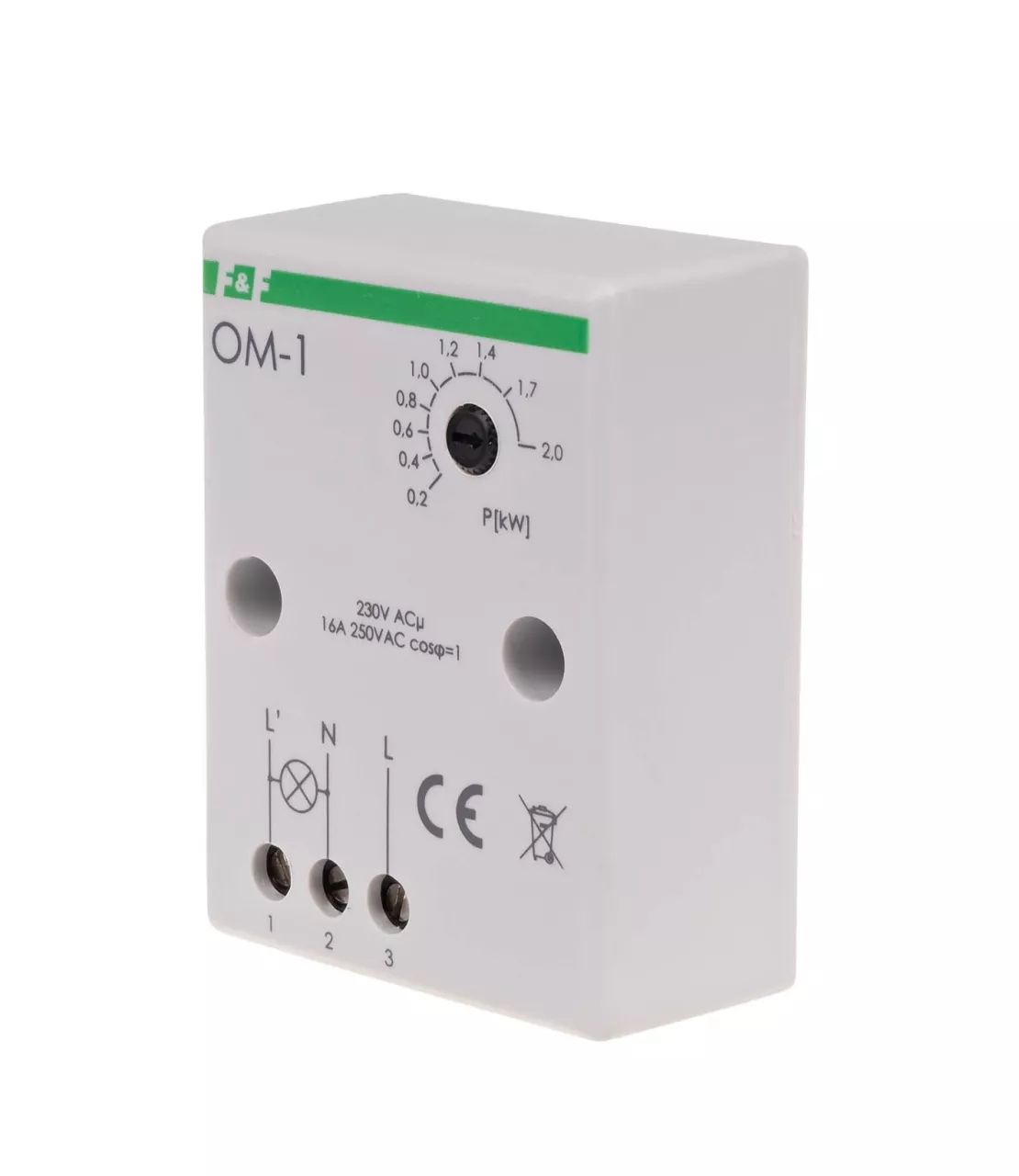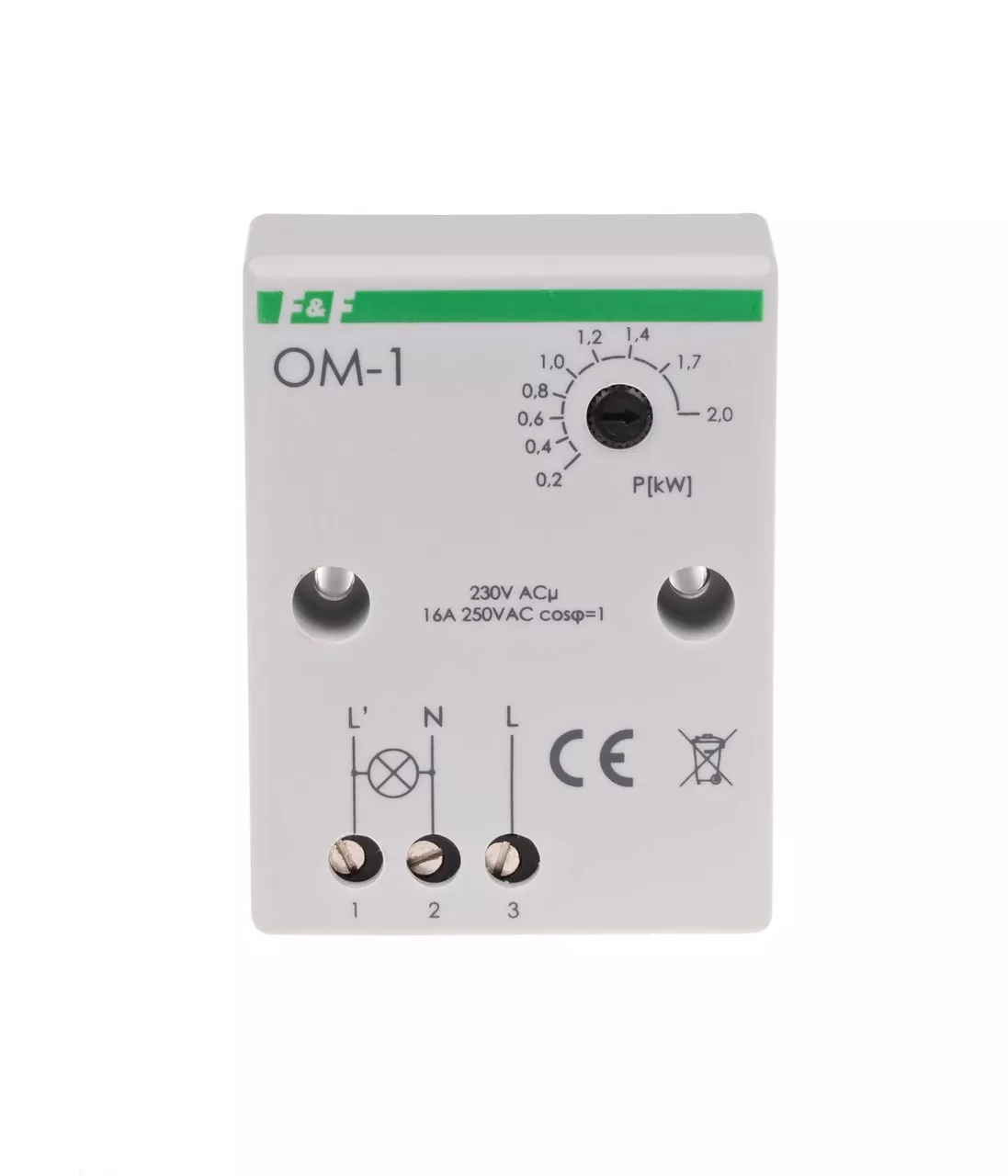 Napięcie zasilania 230 V AC Maksymalny prąd obciążenia AC-1 16 A Element wykonawczy przekaźnik Konfiguracja styków 1 × NO Separacja styku NIE Opóźnienie zadziałania 1,5 ÷ 2 s Ograniczenie mocy 200÷2000 VA Czas powrotu zasilania 30 s Histereza powrotu zasilania 2% Przyłącze zaciski śrubowe 2,5 mm² Moment dokręcający 0,4 Nm Pobór mocy 0,8 W Temperatura pracy -25 ÷ 50 °C Wymiary 51×67×26 mm (± 1 mm) Montaż natynkowy Stopień ochrony IP20