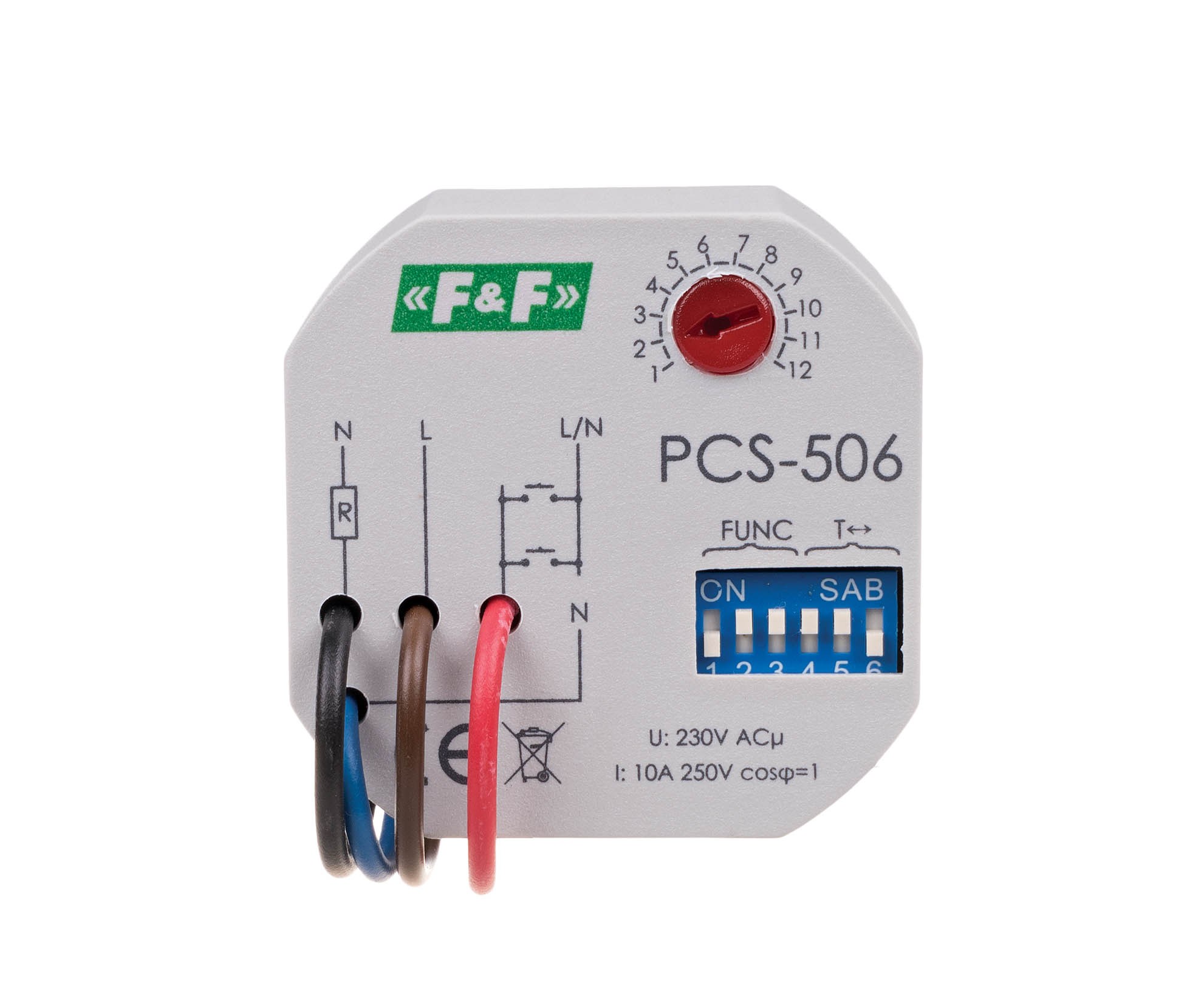 Napięcie zasilania 230 V AC Tryb pracy wielofunkcyjny Element wykonawczy przekaźnik Maksymalny prąd obciążenia 10 A Konfiguracja styków 1 × NO Separacja styku NIE Opóźnienie zadziałania 50 ms Prąd impulsu sterującego mniej niż 1 mA Czas działania - regulowany 0,1s÷24h Przyłącze 4×DY 1mm²; długość: 10 cm Pobór mocy 0,8 W Temperatura pracy -25 ÷ 50 °C Wymiary Ø 55 mm; wysokość: 13 mm Montaż w puszce podtynkowej Ø60 Stopień ochrony IP20