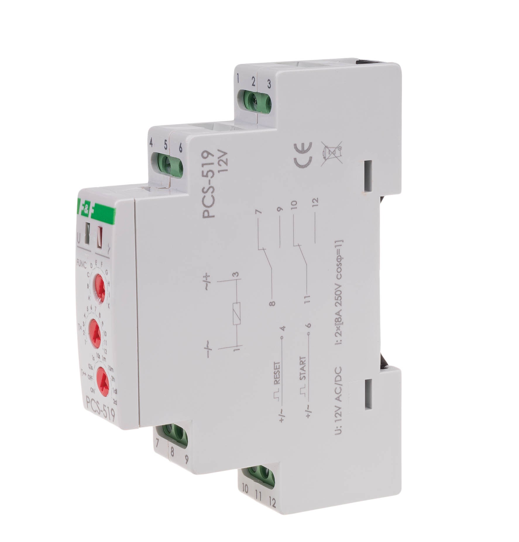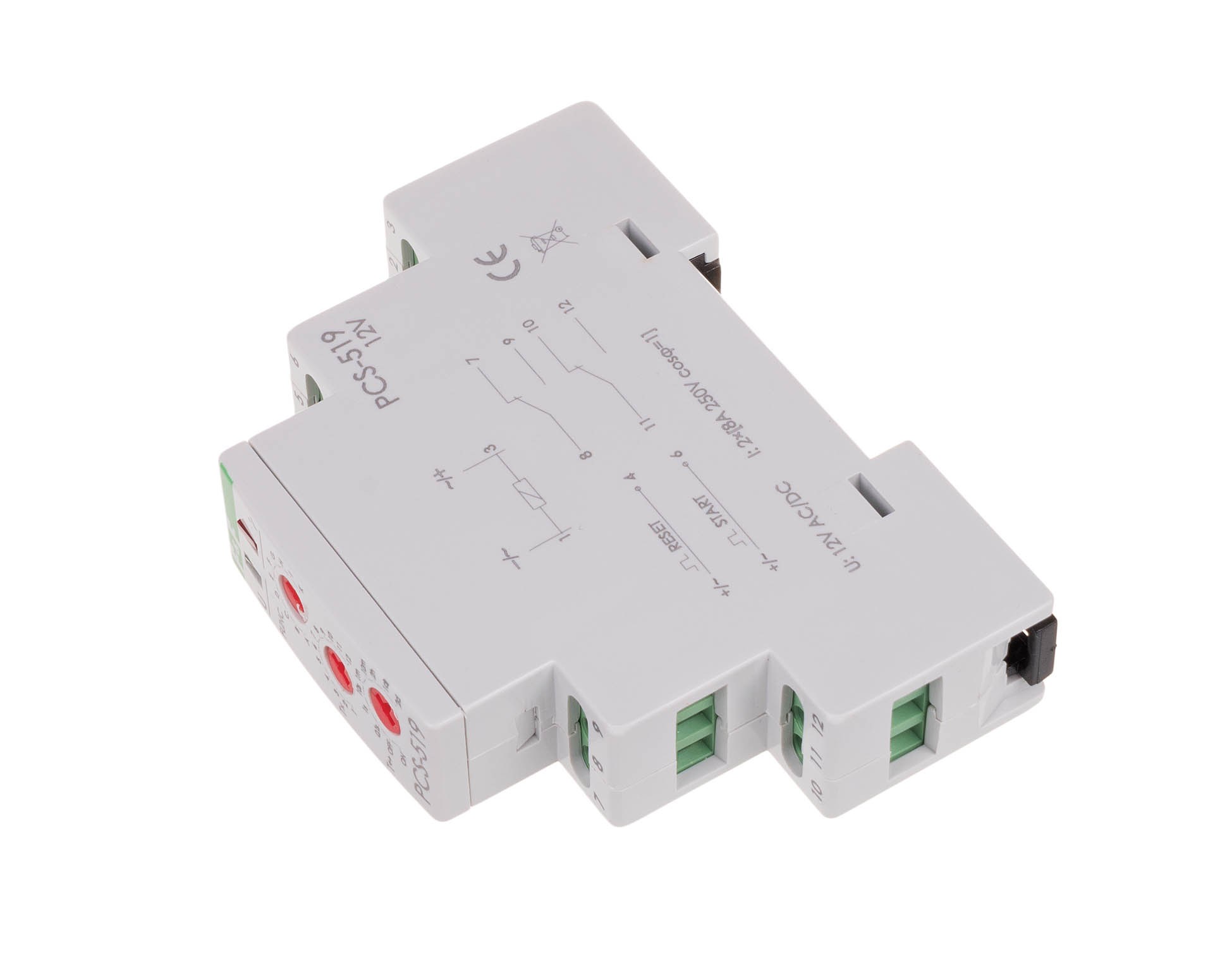 Przekaźnik czasowy 10-funkcji, styki 2NO/NC 12V PCS-519 12V