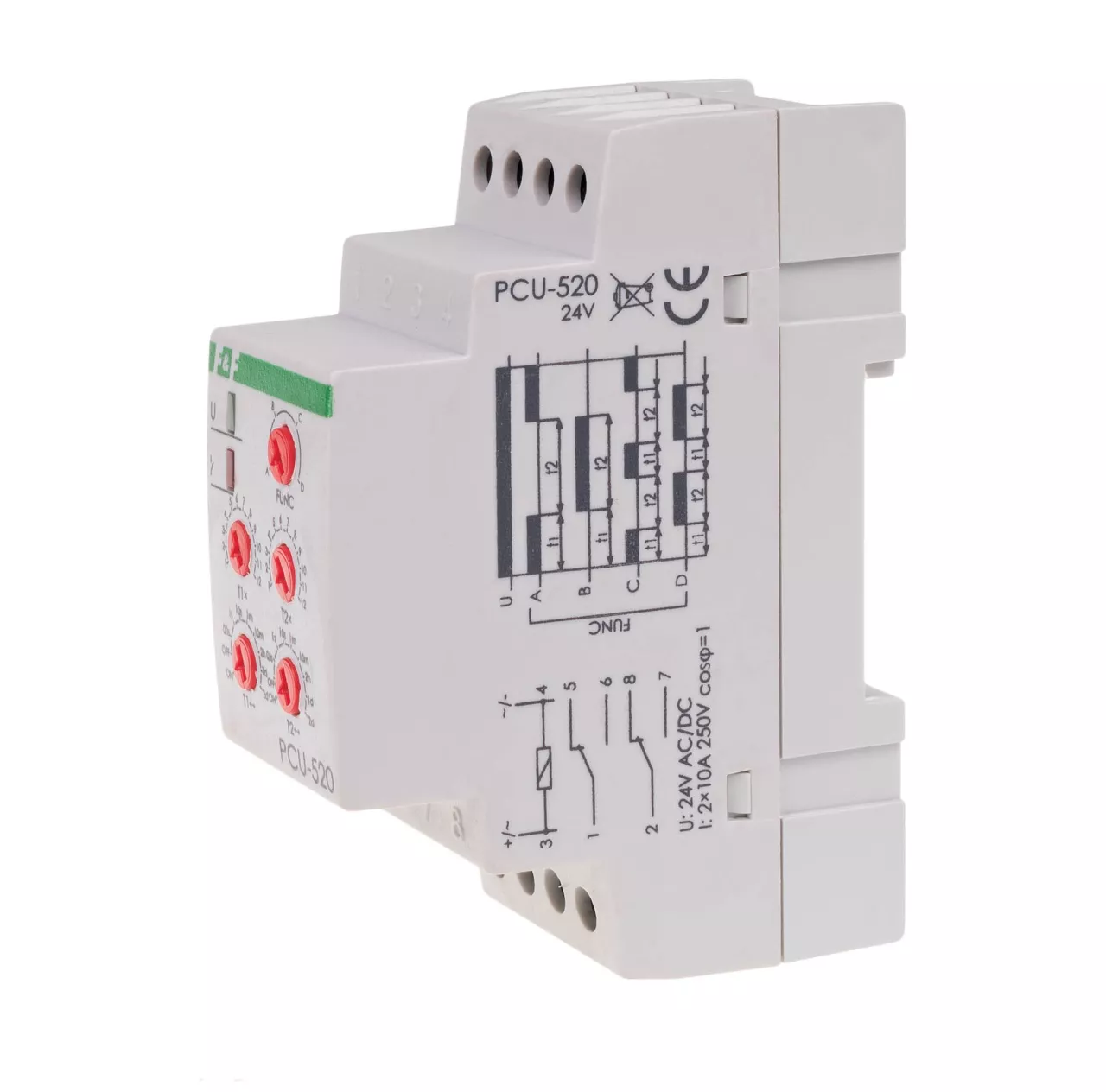 Przekaźnik czasowy 2-funkcyjny (nastawa 2 czasów T1 T2, styk: 2xNO/NC 24V