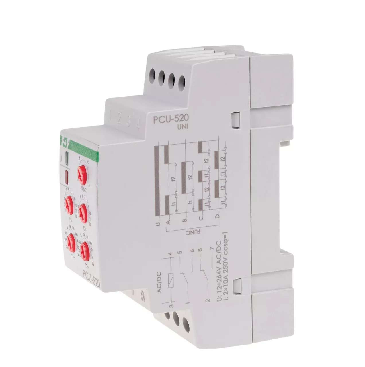 Napięcie zasilania 12÷264 V AC/DC Tryb pracy opóźnione wyłączenie, opóźnione załączenie, praca cykliczna Element wykonawczy przekaźnik Maksymalny prąd obciążenia 2 × 8 A Konfiguracja styków 2 × NO/NC Separacja styku TAK Opóźnienie zadziałania 50 ms Sygnalizacja stanu styku LED czerwona Czas działania - regulowany 0,1 s ÷ 576 godz. Sygnalizacja zasilania LED zielona Czas przerwy - regulowany 0,1s ÷ 576 godz. Przyłącze zaciski śrubowe 4,0 mm² Moment dokręcający 0,5 Nm Pobór mocy 1,2 W Temperatura pracy -25 ÷ 50 °C Wymiary 2 moduły (35 mm) Montaż na szynie 35 mm Stopień ochrony IP20