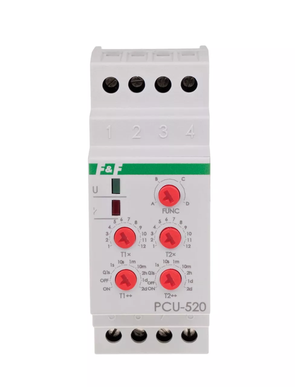 Przekaźnik czasowy 2-funkcyjny (nastawa 2 czasów T1 T2, styk: 2xNO/NC 12-264V