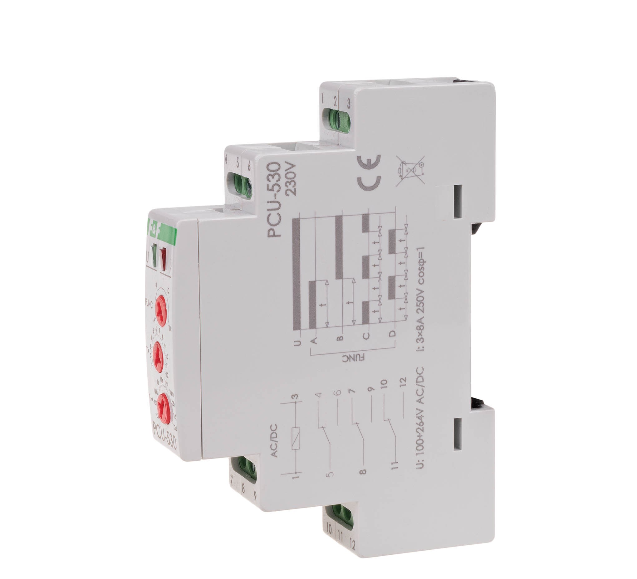 Napięcie zasilania 100÷264 V AC/DC Tryb pracy opóźnione wyłączenie, opóźnione załączenie, praca cykliczna Element wykonawczy przekaźnik Maksymalny prąd obciążenia 3 × 8 A Konfiguracja styków 3 × NO/NC Separacja styku TAK Opóźnienie zadziałania 50 ms Sygnalizacja stanu styku LED czerwona Czas działania - regulowany 0,1 s ÷ 576 godz. Sygnalizacja zasilania LED zielona Przyłącze zaciski śrubowe 2,5 mm² Moment dokręcający 0,4 Nm Pobór mocy 0,15 W Temperatura pracy -25 ÷ 50 °C Wymiary 1 moduł (18 mm) Montaż na szynie 35 mm Stopień ochrony IP20