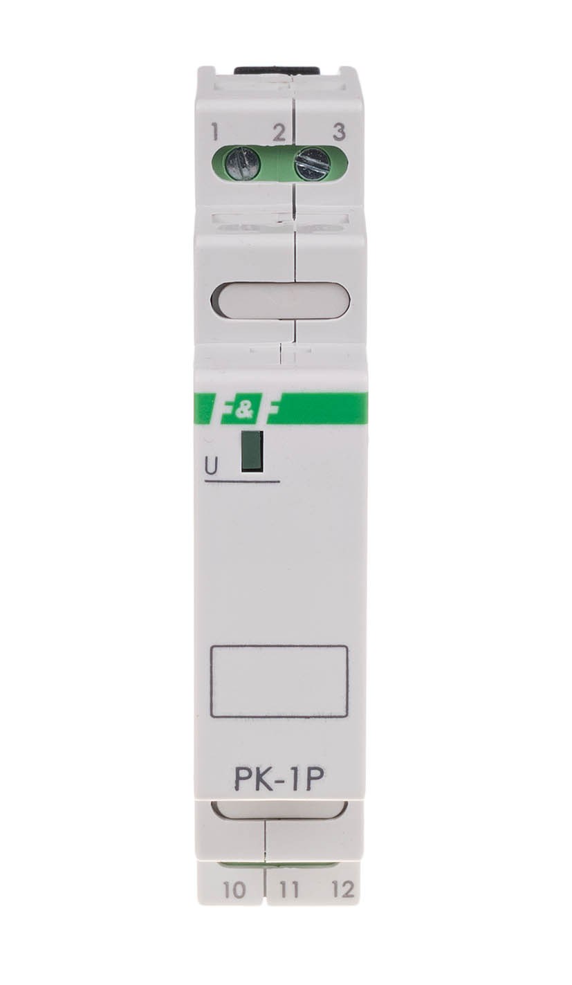 Napięcie zasilania 24 V AC/DC Tolerancja napięcia zasilania -15 ÷ 10 % Maksymalny prąd obciążenia AC-1 10 A Element wykonawczy przekaźnik Konfiguracja styków 1 × NO/NC Separacja styku TAK Maksymalny pobór prądu 25 mA Trwałość łączeniowa mechaniczna min. 5x10⁶ cykli Przyłącze zaciski śrubowe 2,5 mm² Moment dokręcający 0,4 Nm Temperatura pracy -25 ÷ 50 °C Wymiary 1 moduł (18 mm) Montaż na szynie 35 mm Stopień ochrony IP20