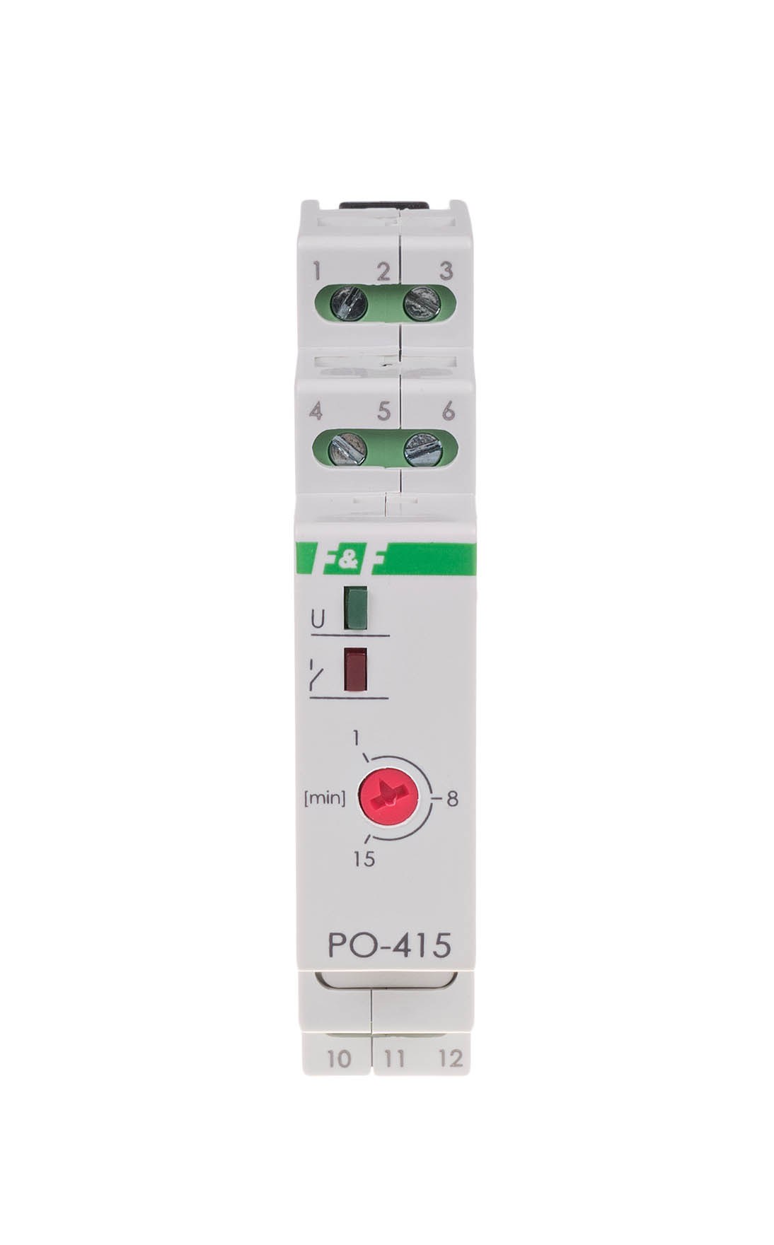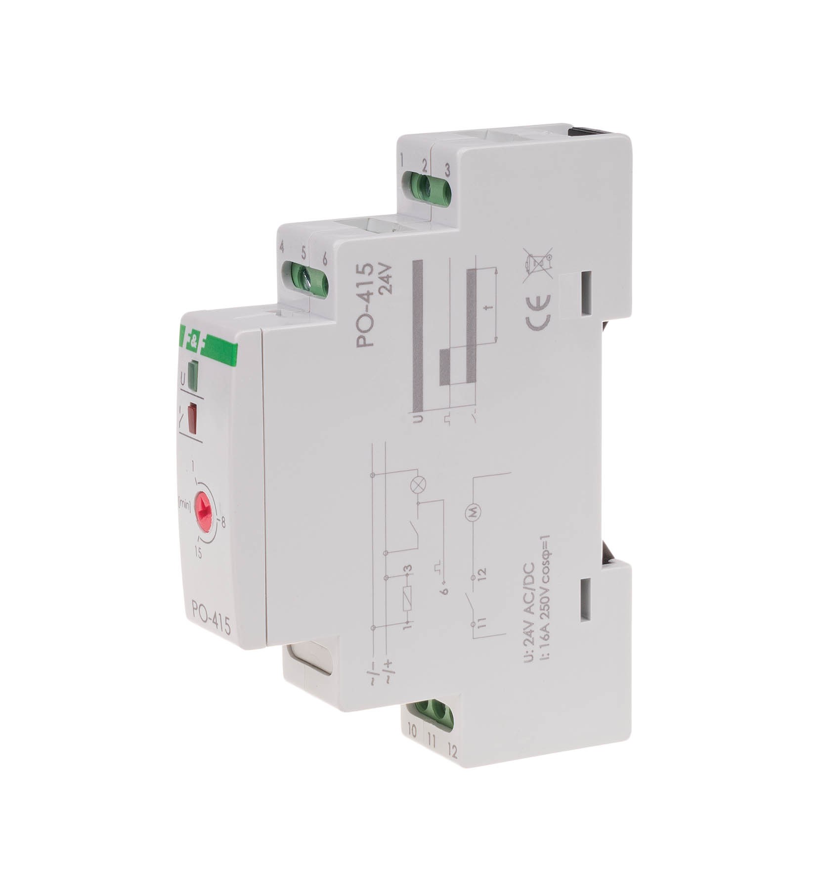 Napięcie zasilania 24 V AC/DC Tryb pracy z opóźnionym odpadaniem Element wykonawczy przekaźnik Maksymalny prąd obciążenia 10 A Konfiguracja styków 1 × NO/NC Separacja styku TAK Prąd impulsu sterującego mniej niż 300 mA Sygnalizacja stanu styku LED czerwona Sygnalizacja zasilania LED zielona Czas podtrzymania 1÷15 min. Przyłącze zaciski śrubowe 2,5 mm² Moment dokręcający 0,4 Nm Pobór mocy 0,56 W Temperatura pracy -25 ÷ 50 °C Wymiary 1 moduł (18 mm) Montaż na szynie 35 mm Stopień ochrony IP20