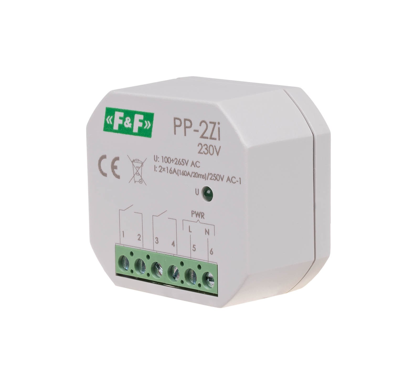 Przekaźnik elektromagnetyczny, 2Z 16A, montaż podtynkowy, U=100-265V AC,styk:2Z 16A (160A/20ms)