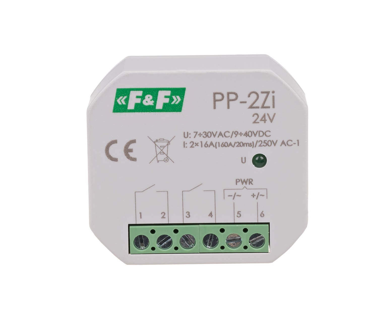 Przekaźnik elektromagnetyczny, 2Z 16A, montaż podtynkowy,U=7÷30VAC/9÷40VDC;2Z 16A (160A/20ms)