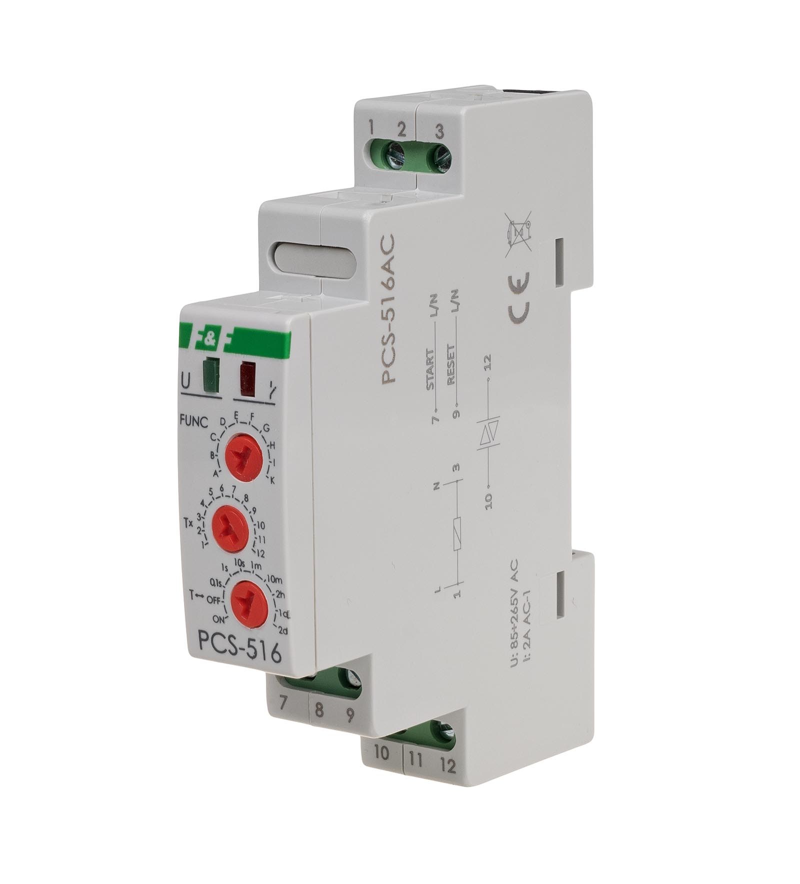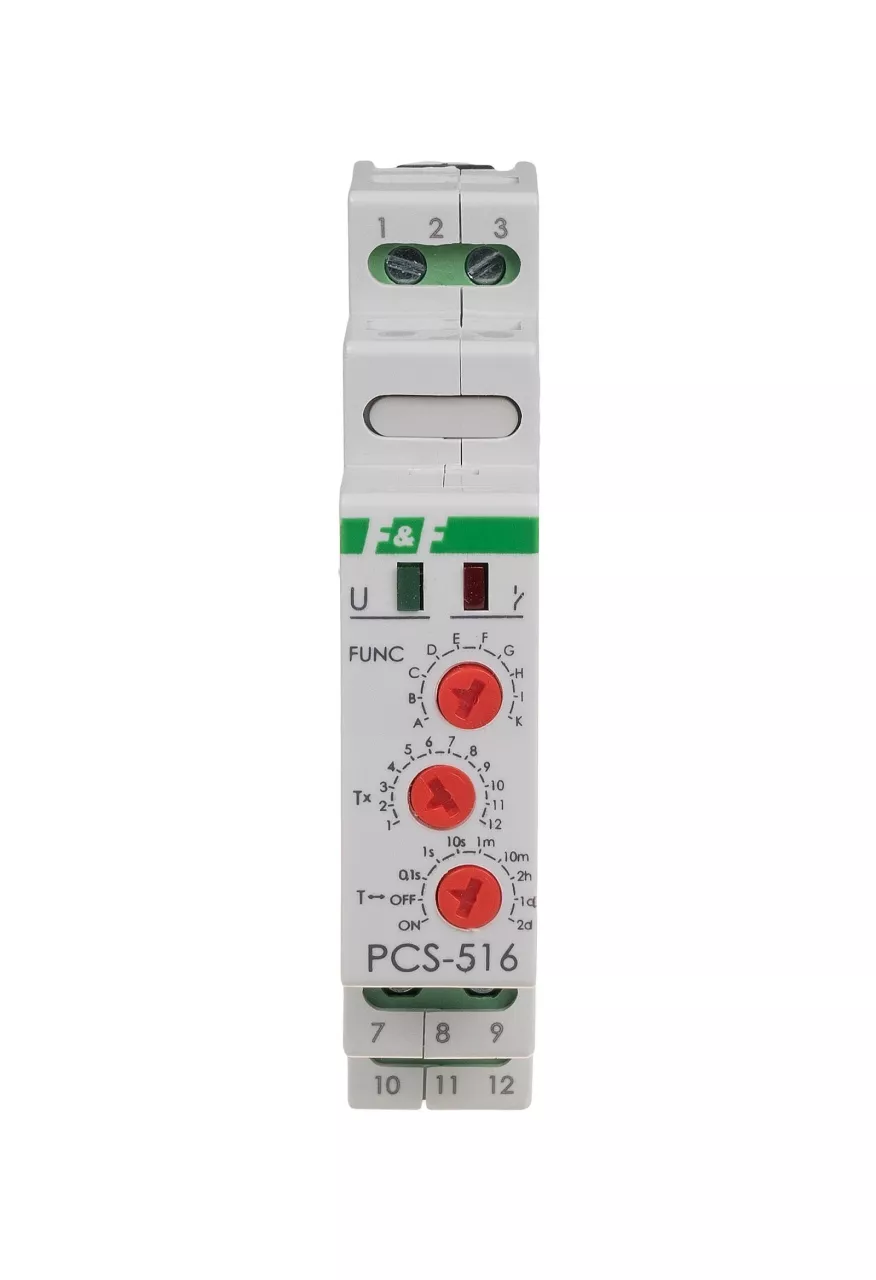 Przekaźnik czasowy 10-funkcyjny. Z wejściami START i RESET. PCS-516AC