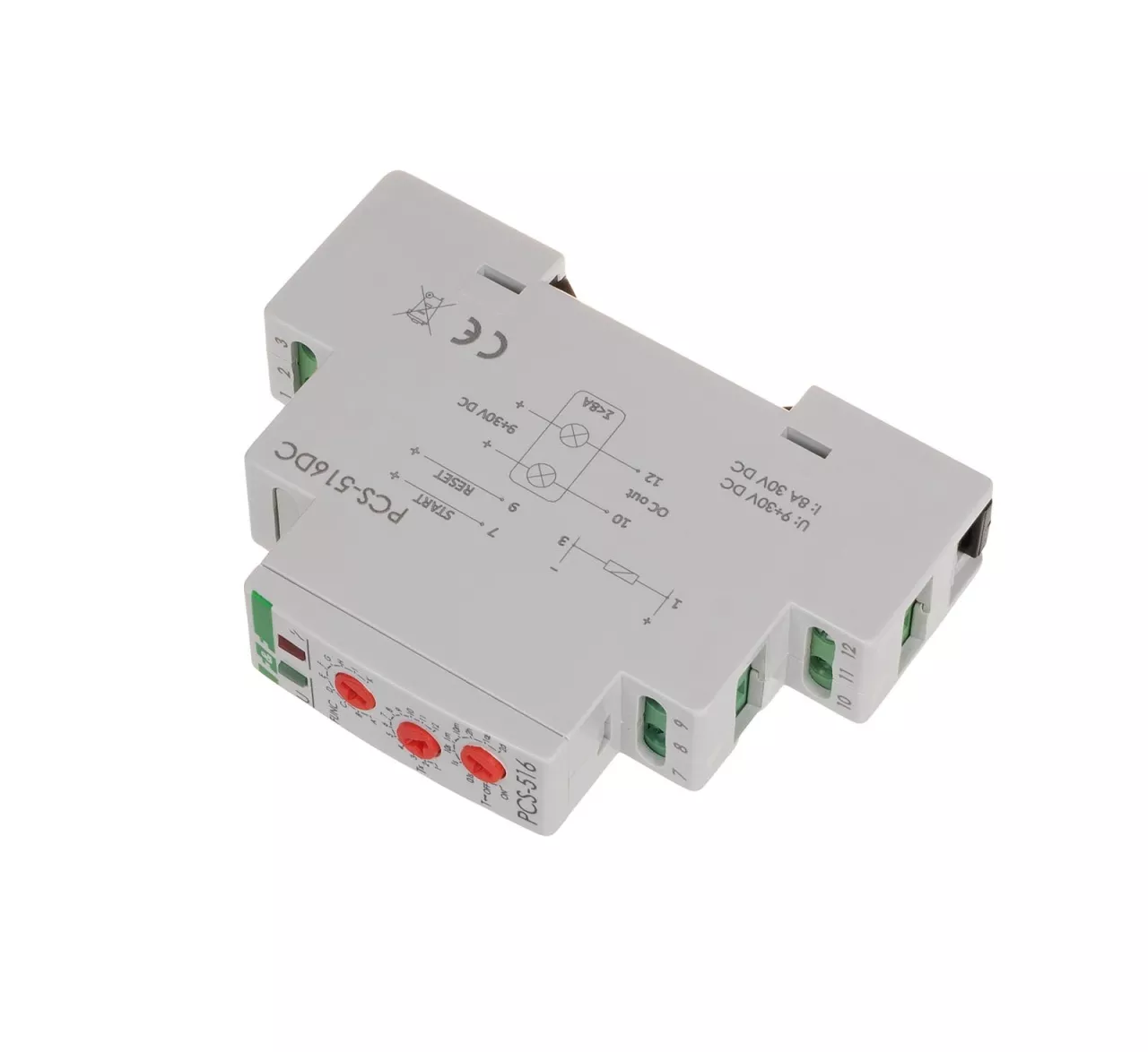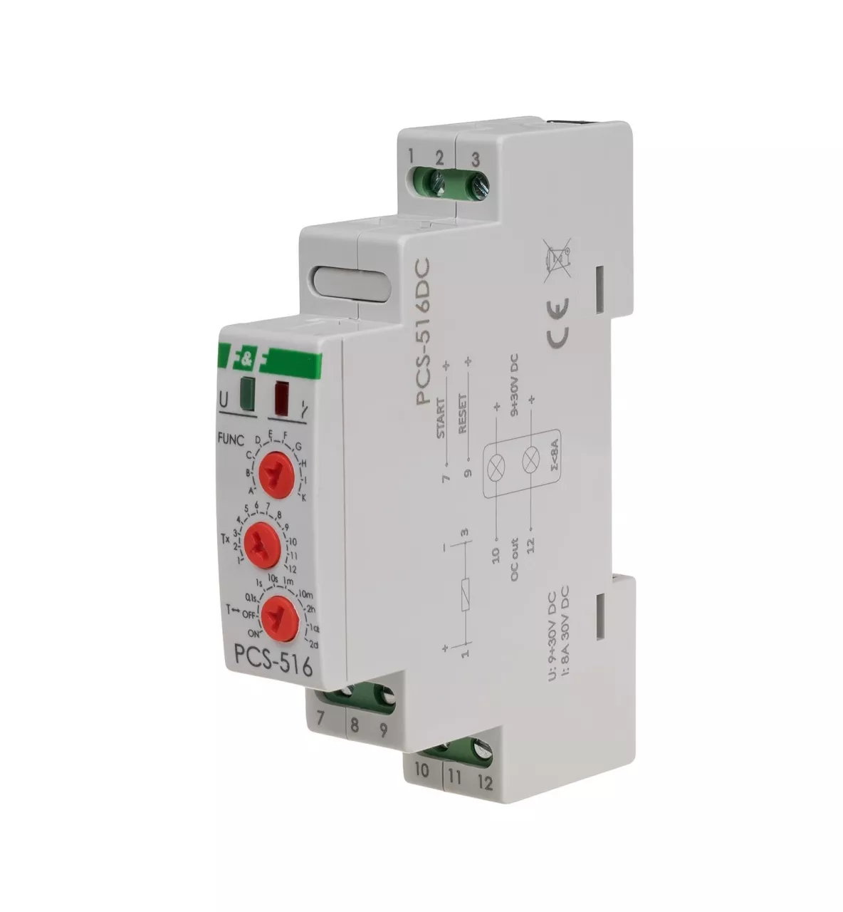 Przekaźnik czasowy 10-funkcyjny. Z wejściami START i RESET. PCS-516DC