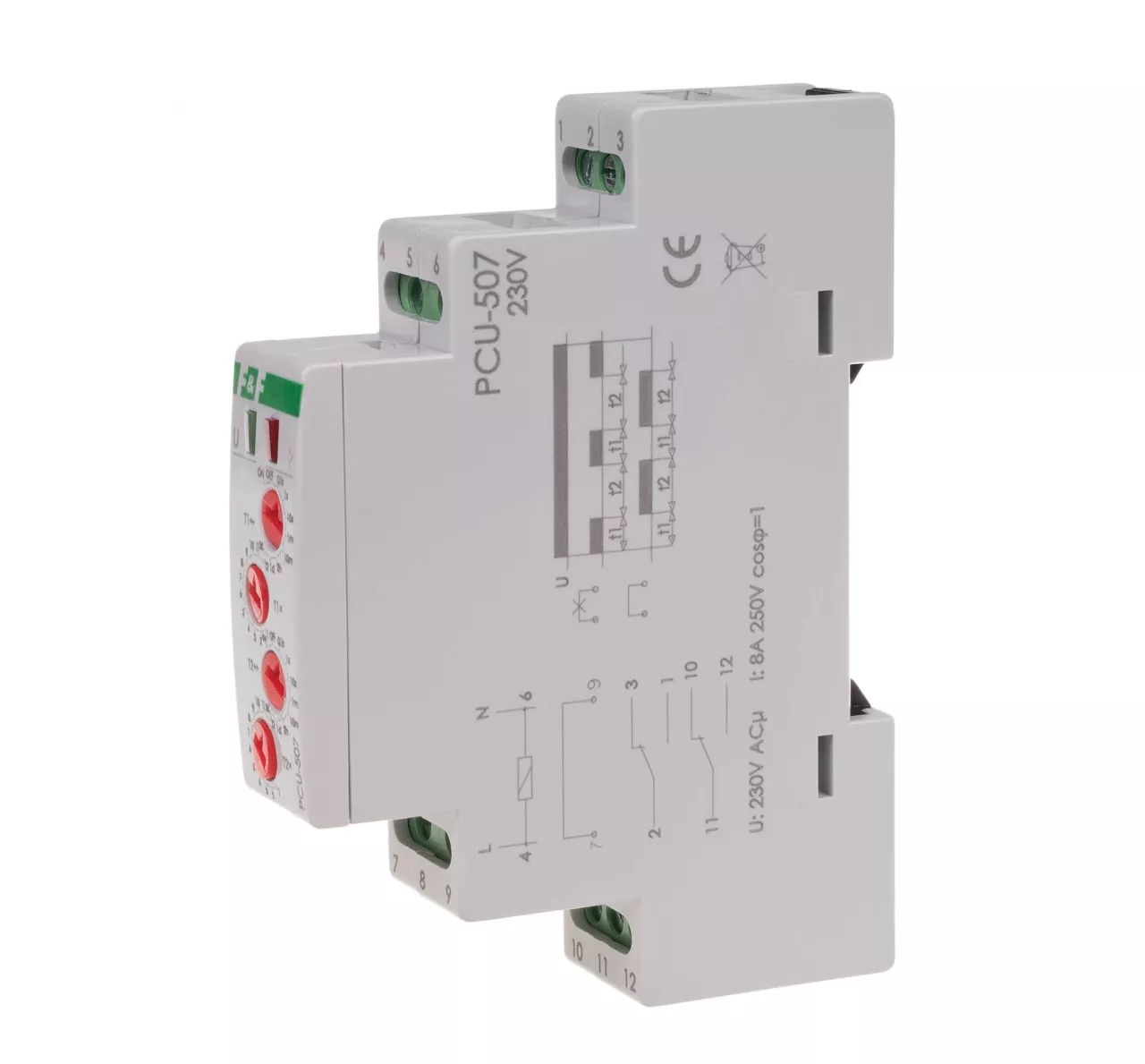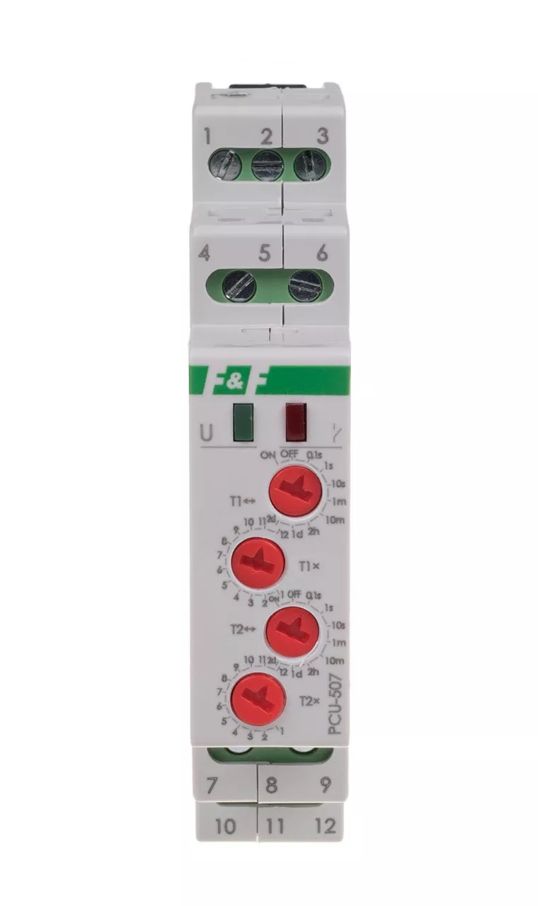 Przekaźnik czasowy 2-funkcyjny (nastawa 2 czasów T1 T2, styk: 2xNO/NC 230V PCU-507