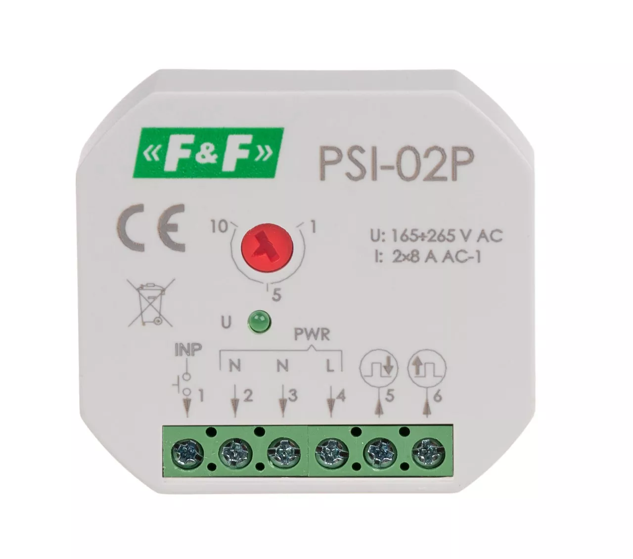 Przetwornik sygnału "ciągły na impuls" z nastawą długości impulsu PSI-02P montaz w puszce podtynkowej