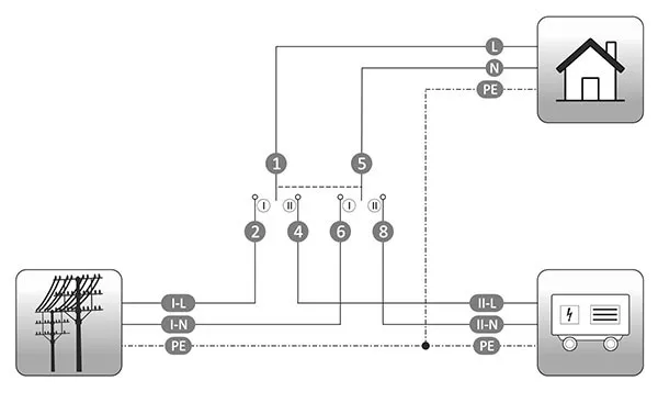 2-biegunowy, przełącznik instalacyjny sieć-agregat 63A