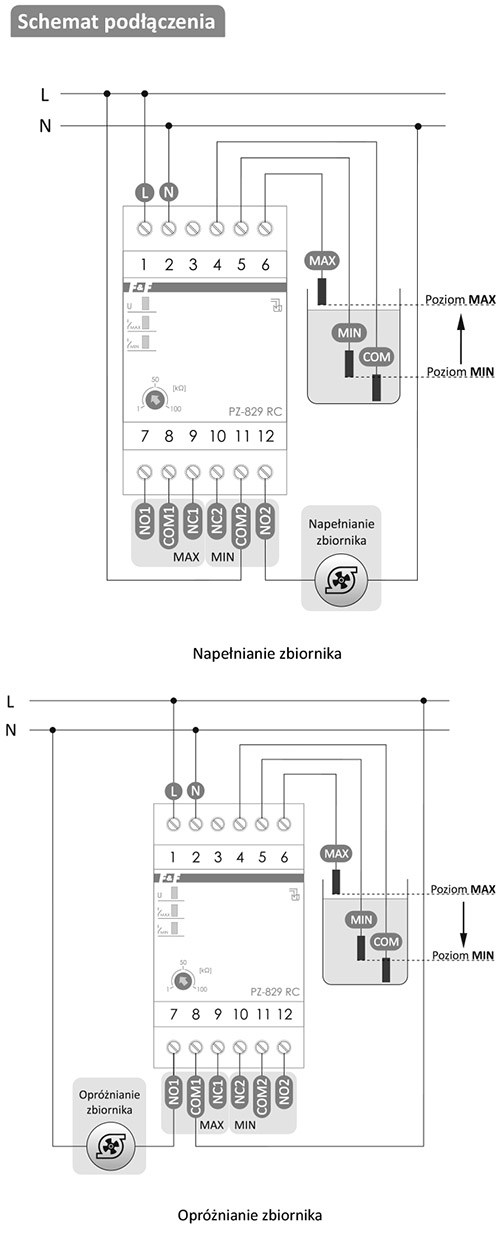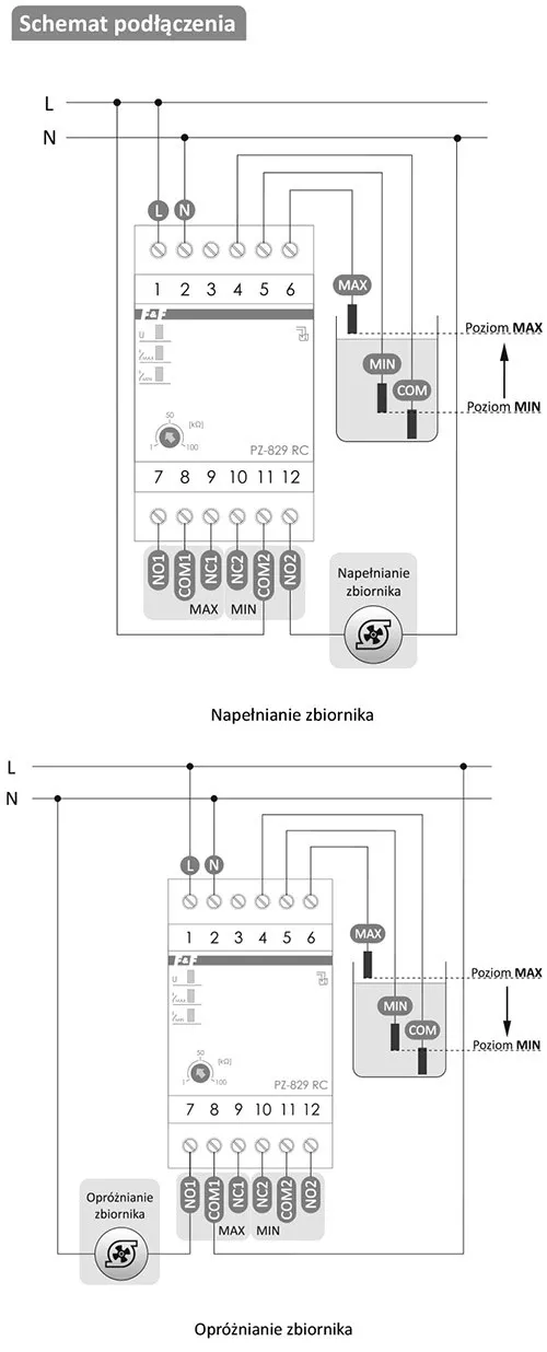 Przekaźnik kontroli poziomu wody deszczowej dwu stanowy