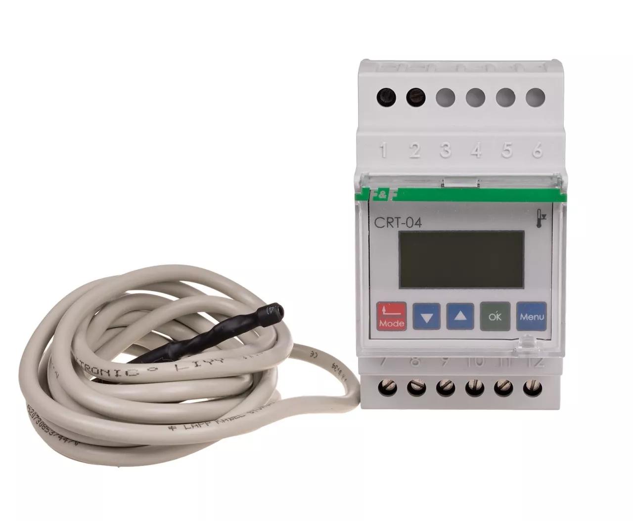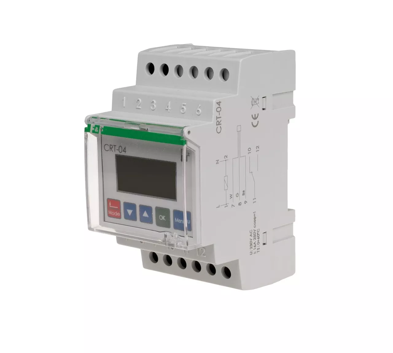 Napięcie zasilania 230 V AC Element wykonawczy przekaźnik Maksymalny prąd obciążenia 16 A Konfiguracja styków 1 × NO/NC Separacja styku TAK Zakres regulacji temperatury 0÷60°C Histereza - regulowana 0÷10°C Dokładność nastawy 0,1°C Sonda temperatury RT4 Trwałość baterii 3 lata Korekcja wzorcowa ±5°C Czas zwłoki przełączenia - regulowany 1÷15 min Przyłącze zaciski śrubowe 4,0 mm² Moment dokręcający 0,5 Nm Pobór mocy 1,5 W Temperatura pracy -20÷40°C Wymiary 3 moduły (52,5 mm) Montaż na szynie 35 mm Stopień ochrony IP20