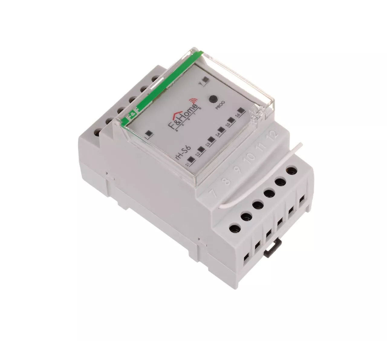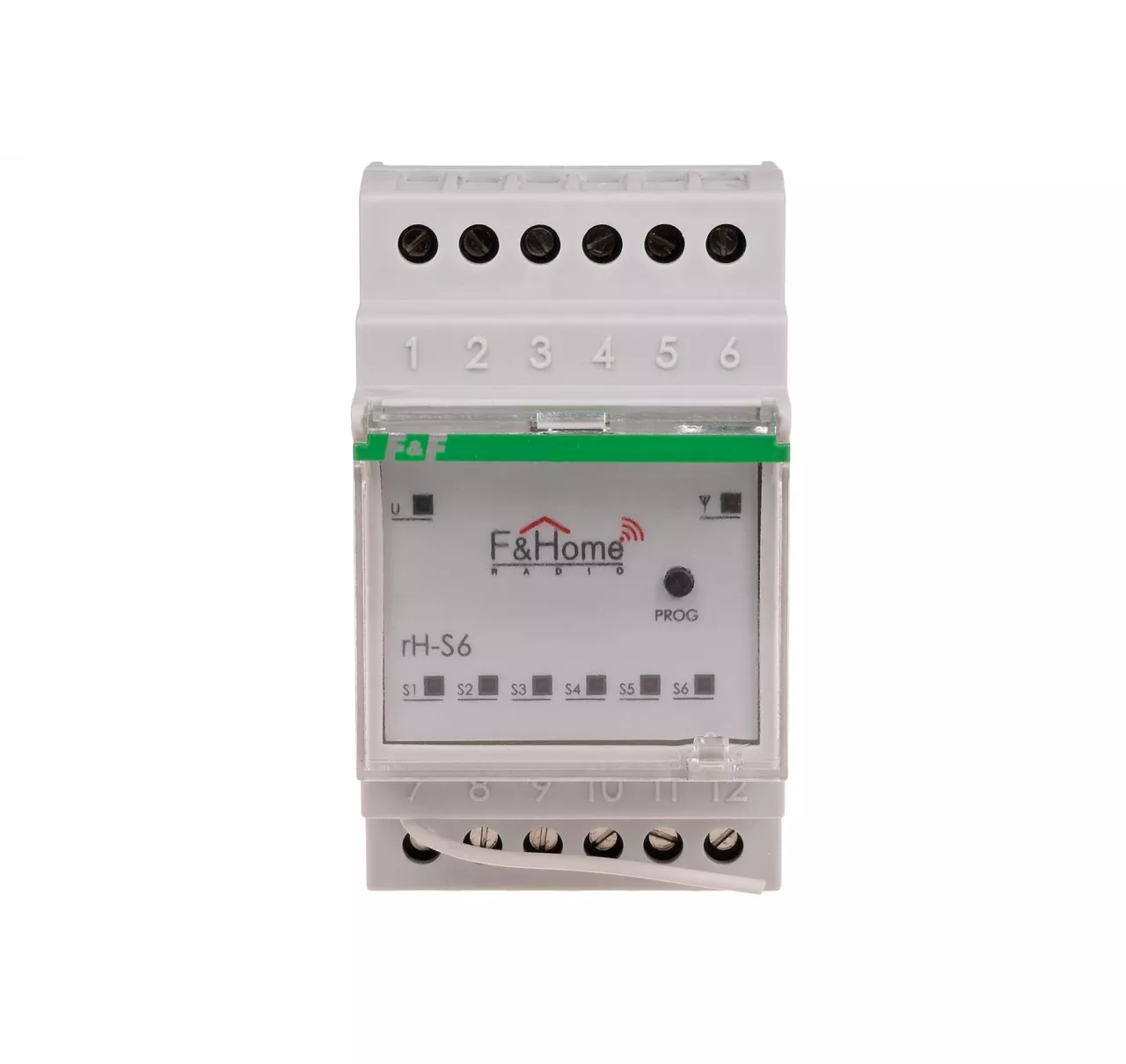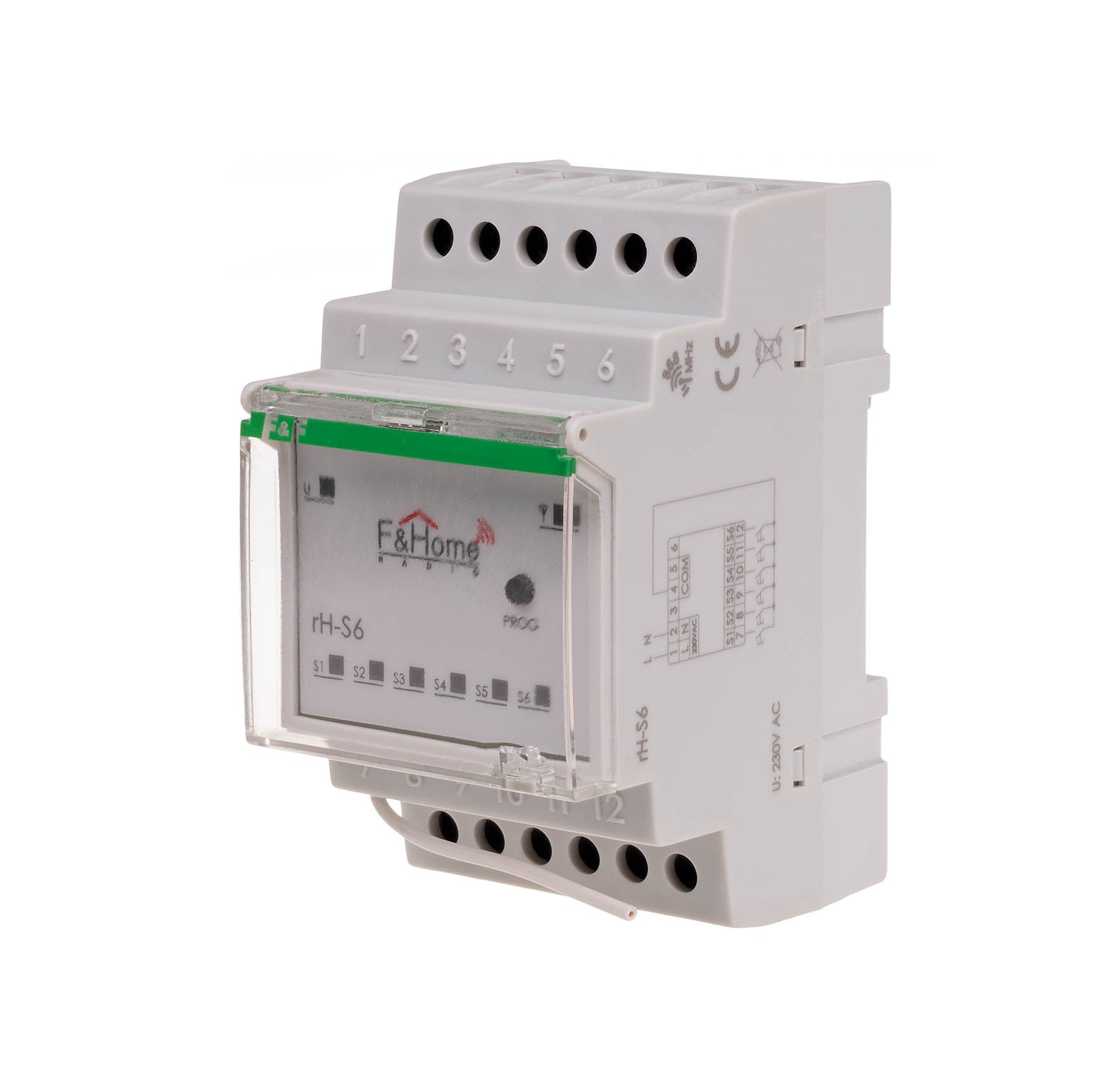 Nadajnik sześciokanałowy rH-S6 posiada wejścia do podłączenia sześciu monostabilnych styków bezpotencjałowych. Moduł wysyła informacje o zwarciu lub rozwarciu styków do systemu. Komunikacja z serwerem odbywa się drogą radiową. rH-S6 szczególnie nadaje się do podłączania przycisków lub wyłączników krańcowych.