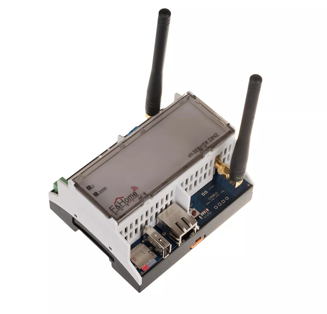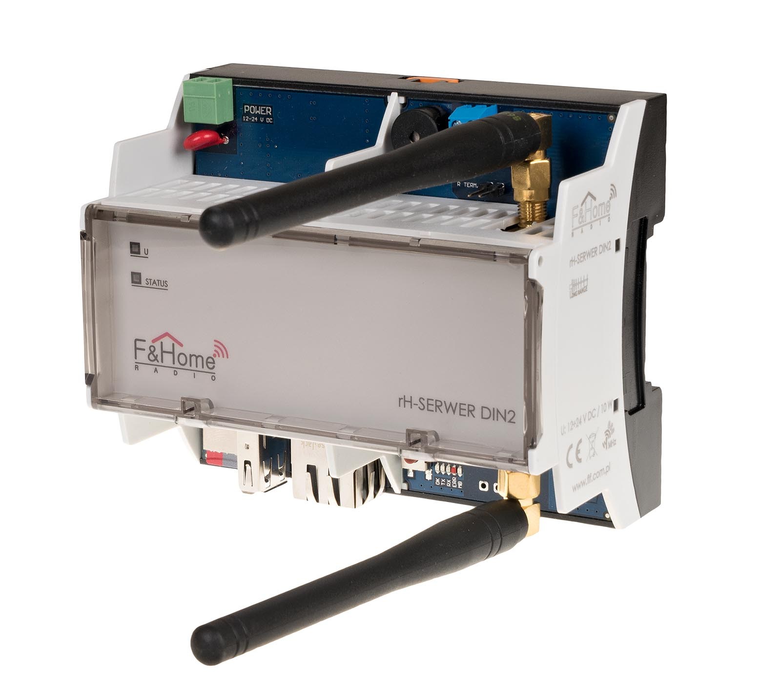 rH-SERWER DIN2 jest centralnym urządzeniem sterującym elementami Systemu F&Home Radio. Zarządza działaniem systemu według preferencji domowników poprzez dwukierunkową, szyfrowaną komunikację radiową. Dołączone oprogramowanie umożliwia sterowanie i konfigurację Systemu przez domowników, zarówno lokalnie, jak i zdalnie poprzez Internet oraz poprzez sieć GSM. Programowanie systemu odbywa się w niezwykle łatwy i szybki sposób – poprzez graficzną aplikację, w której obiekty przeciąga się i łączy ze sobą kilkoma ruchami myszki. Sterownik główny posiada wbudowany zegar czasu rzeczywistego, zegar astronomiczny oraz systemy kontroli poprawności pracy. CECHY: • Radiowa, dwukierunkowa komunikacja z potwierdzeniem pomiędzy sterownikiem głównym a elementami systemu • Bezpieczna szyfrowana transmisja, z unikalnym kluczem dla każdego sterownika • Redundancja – podwójne radio gwarantujące stabilność systemu • Dostęp do instalacji w budynku poprzez Internet - urządzenia mobilne: telefon, tablet lub komputer • Kontrola pracy wszystkich elementów systemu • Bardzo mały pobór mocy, maksymalnie 4 W i bezgłośna praca.