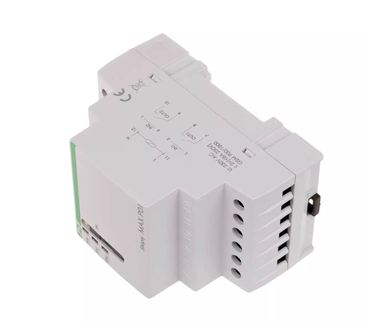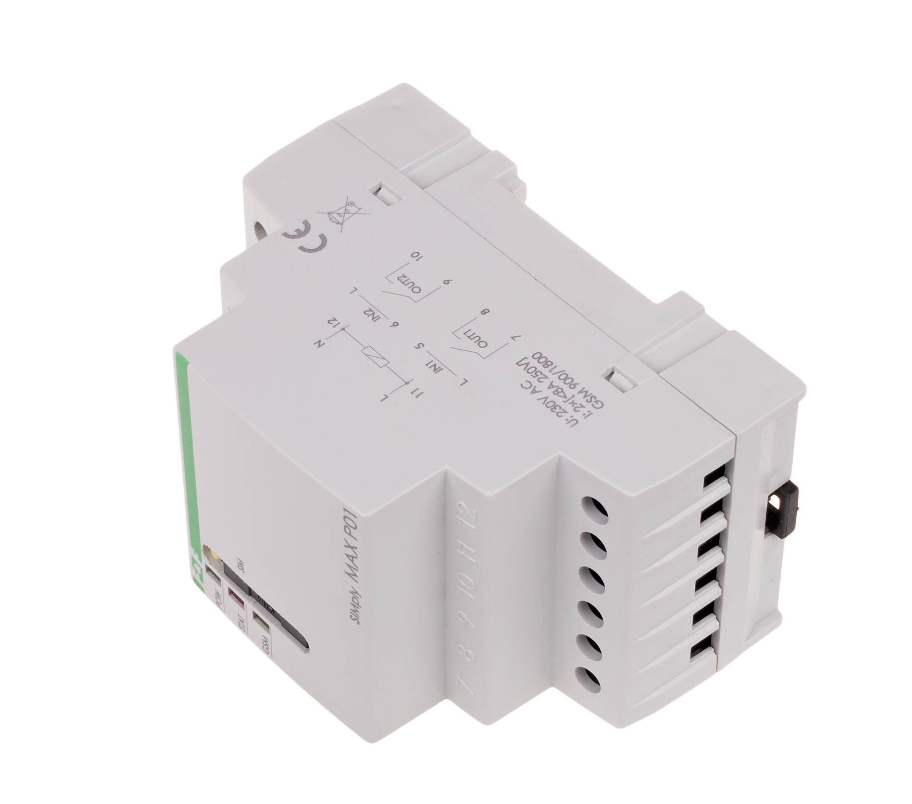 Przekaźnik zdalnego sterowania GSM (SMS); 2xWY, 2xWE; załącz/wyłącz/powiadom; 230V AC; 2x1NO/NC; montaż na szynie DIN