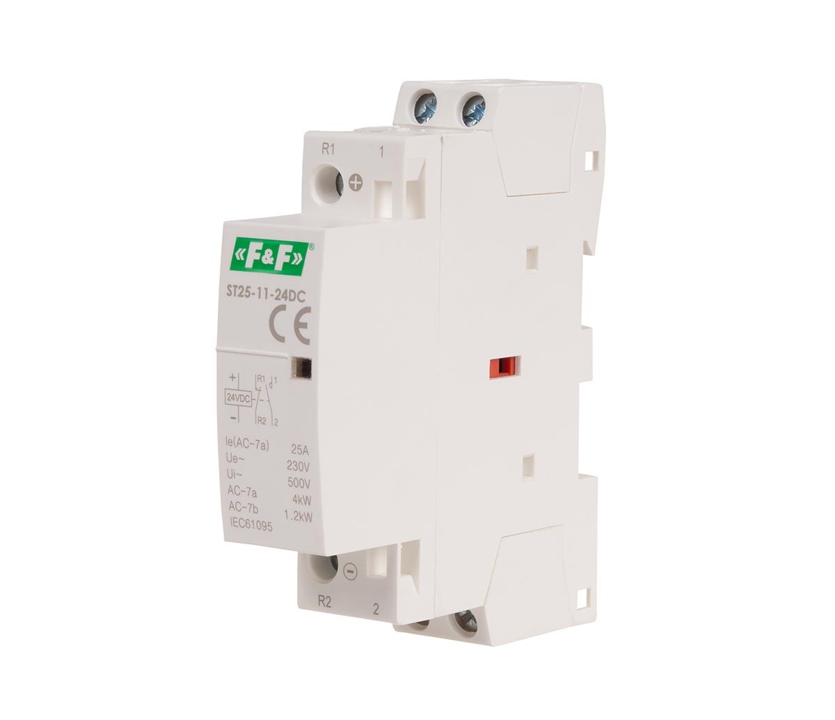Stycznik modułowy, montaż na szynie, styki 1×NO+1×NC, 25A, 24V DC