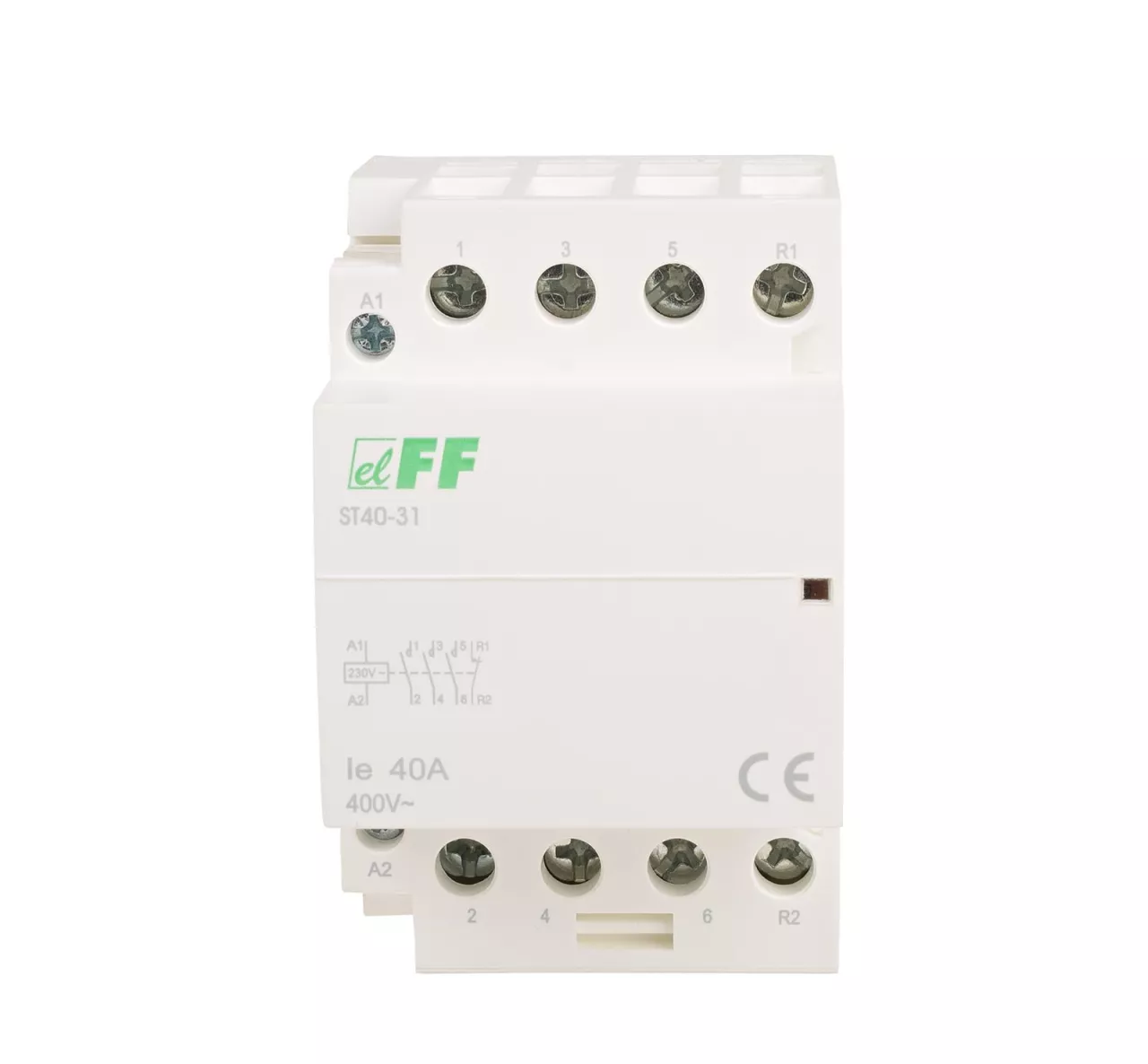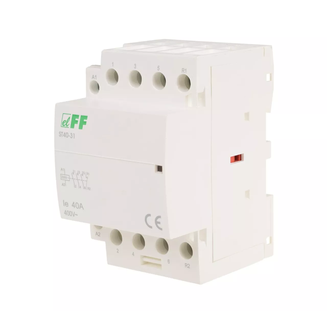 Napięcie zasilania cewki 230 V AC Konfiguracja styków 3×NO+1×NC Prąd torów głównych 40 A Moc łączeniowa kat. AC1 (230V) 16 kW Moc łączeniowa kat. AC3 (230V) 5,5 kW Moduł 3 Nr normy IEC 61095 Trwałość łączeniowa elektryczna 1x10⁵ Trwałość łączeniowa mechaniczna 1x10⁶ Waga 241 g Zaciski śrubowe 16 mm² Napięcie izolacji 4 kV Pobór mocy 6,4 W Temperatura pracy -25 ÷ 50 °C Montaż na szynie 35 mm Stopień ochrony IP20