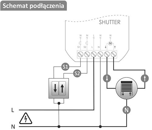 SHUTTER Dopuszkowy sterownik rolet Wi-Fi z silnikiem 230V
