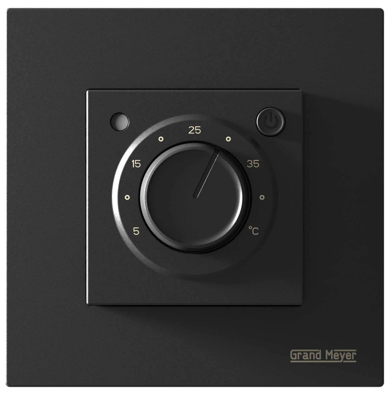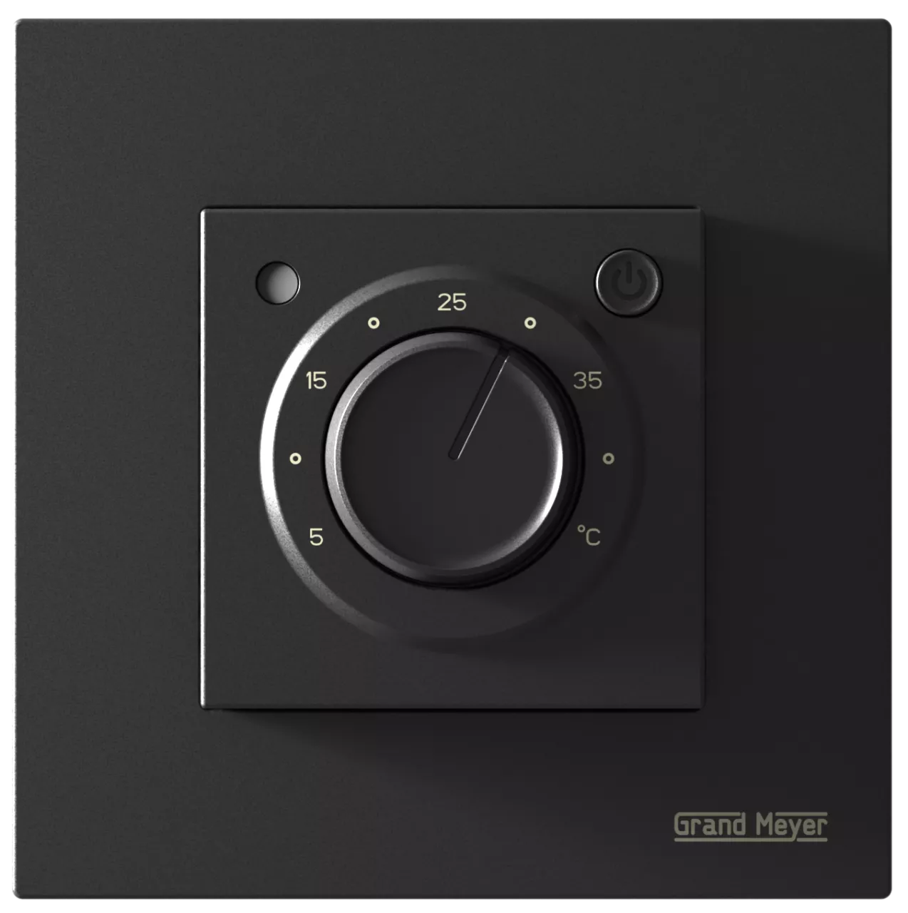 Manualny termostat Grand Meyer MST-9 do montażu w ramki różnych producentów (Schneider Electric, Berker itp.), w tym w ramki wielokrotne. Pasuje do ramek o wymiarach wewnętrznych 46mm x 46mm oraz 56mm x 56mm (za pomocą adapteru). Dostarczany z 3m czujnikiem podłogowym NTC. Montaż w standardowej puszce podtynkowej. Zakres nastawy temperatury od +5 do +40°C. Dioda LED sygnalizuje włączenie ogrzewania. Zasilanie napięciem 230 V.