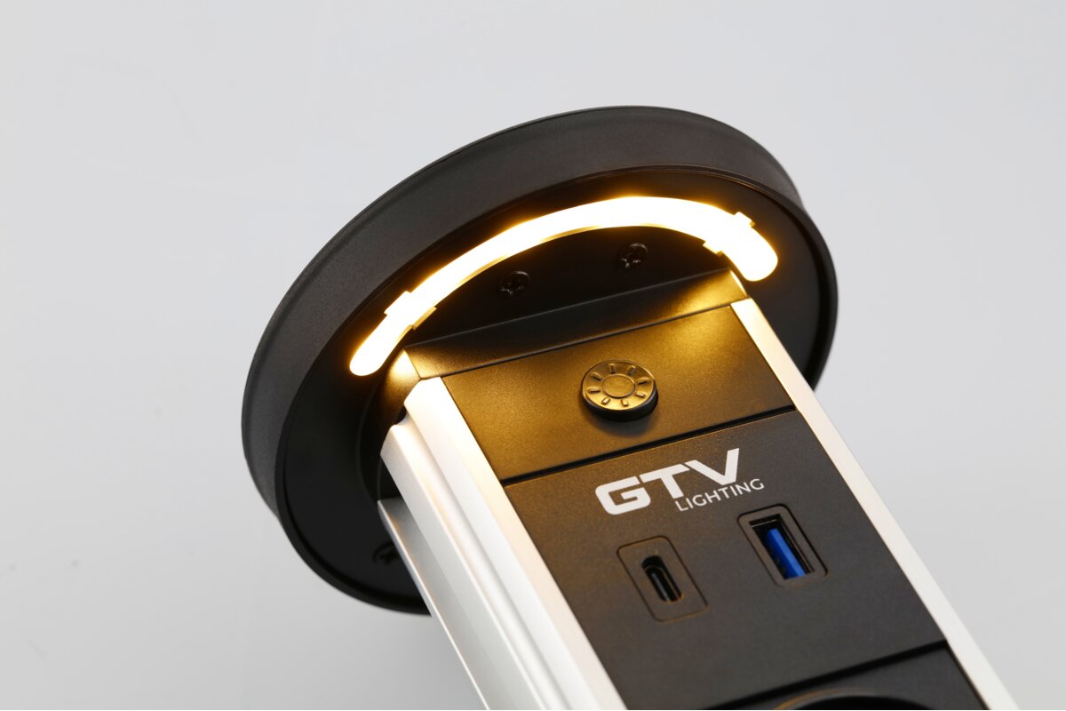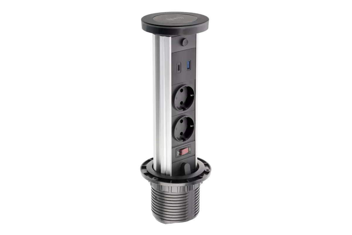 PRZEDŁUŻACZ BIURKOWY WPUSZCZANY CAMINO 80mm, 2x GNIAZDO SCHUKO, USB A+C, ŁADOWARKA INDUKCYJNA 10W, PRZEWÓD 1,5m, CZARNY