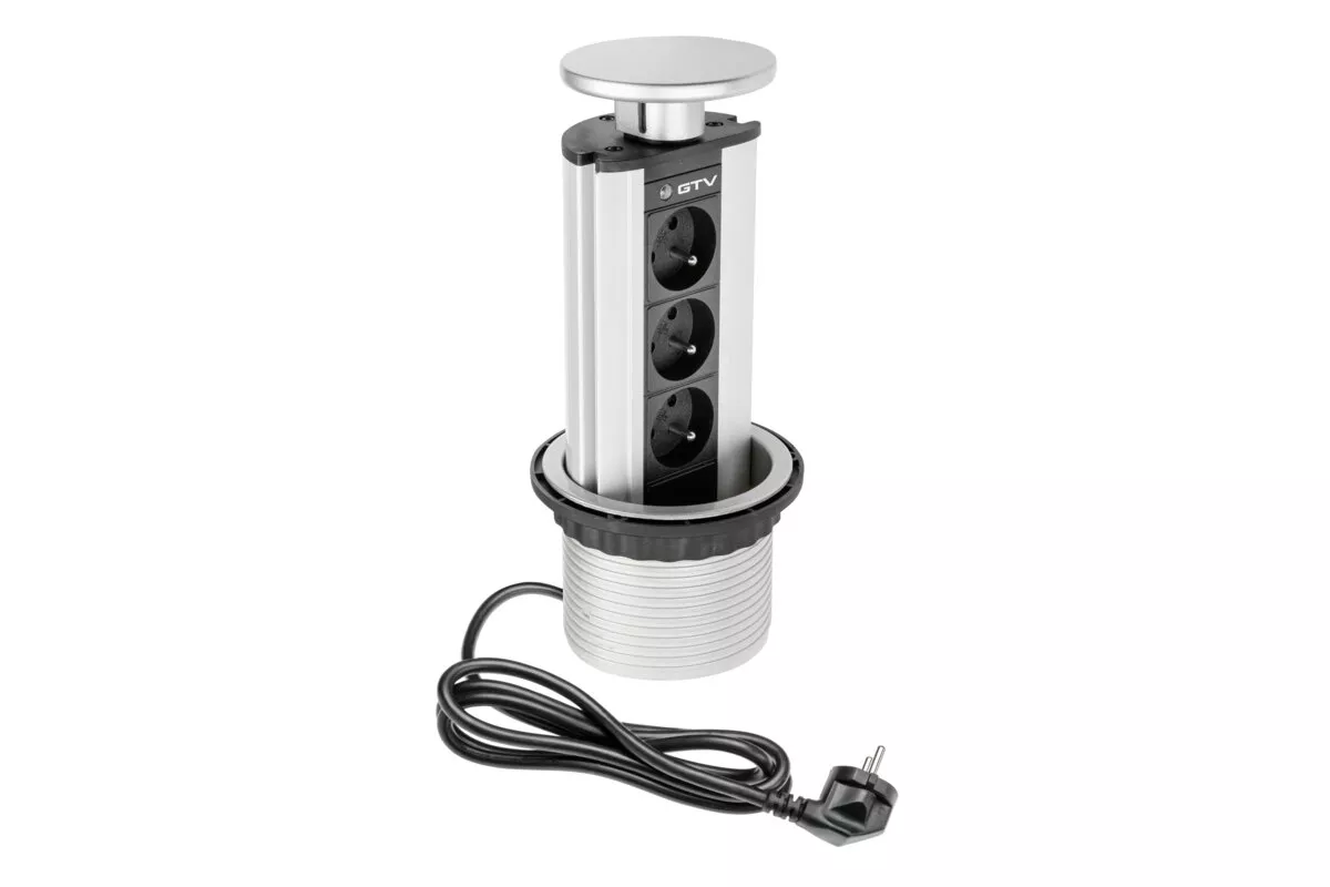 BIURKOWY ROZGAŁĘZIACZ WPUSZCZANY, 3X GNIAZDO Z UZIEMIENIEM (SREBRNY)