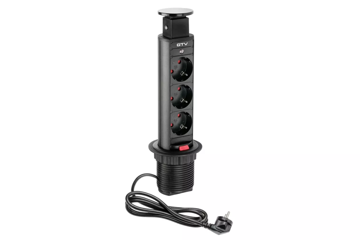 BIURKOWY PRZEDŁUŻACZ WPUSZCZANY 60mm, 3X SCHUKO (CZARNY)