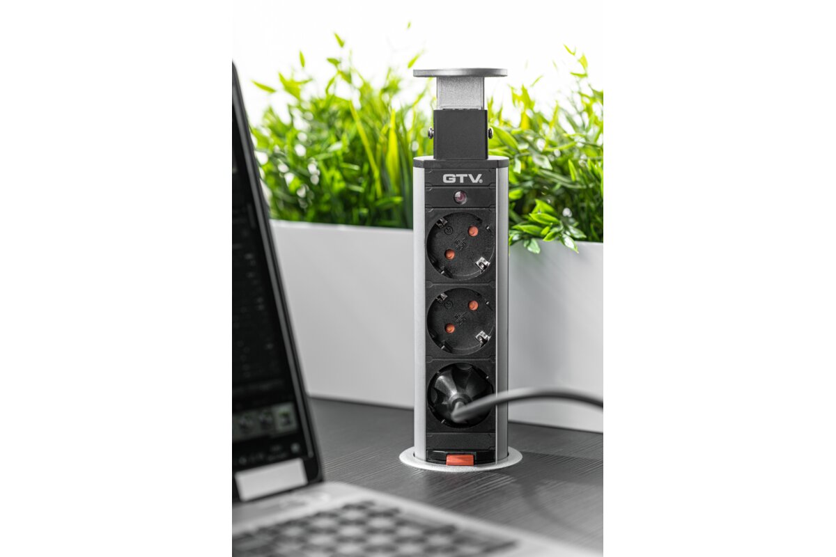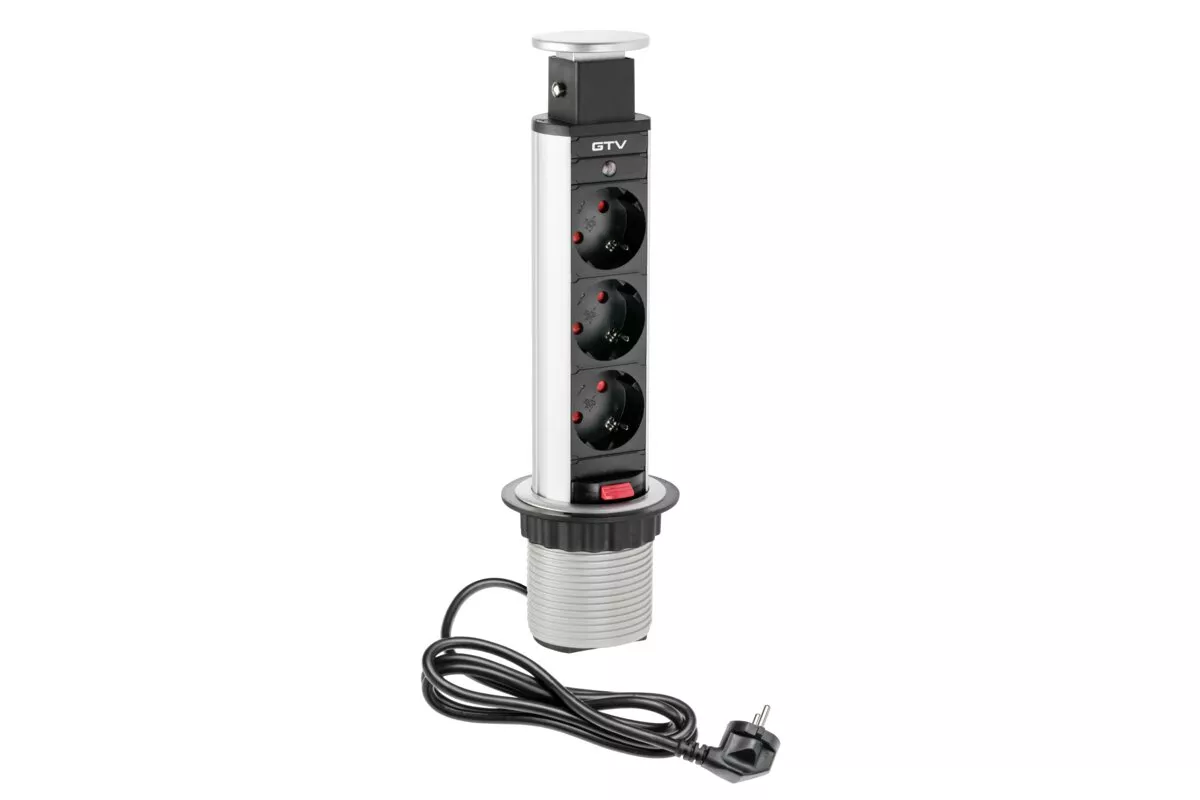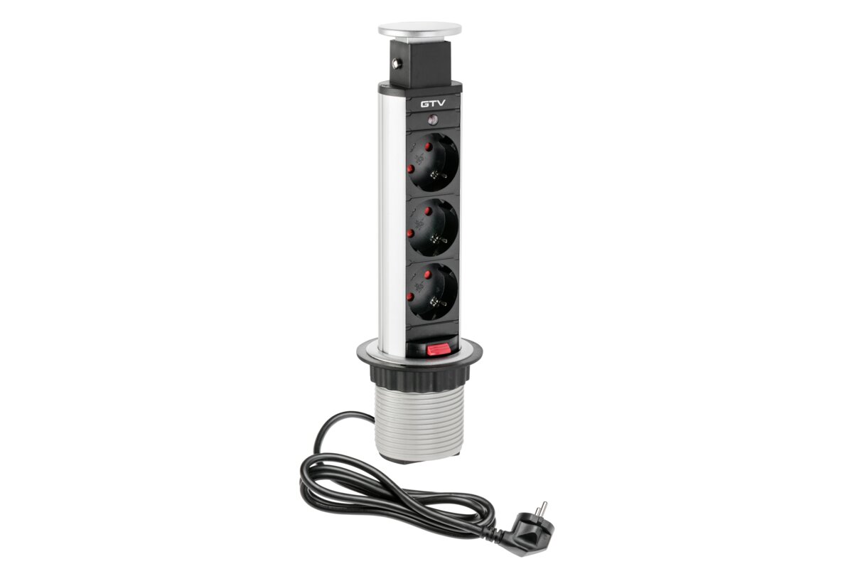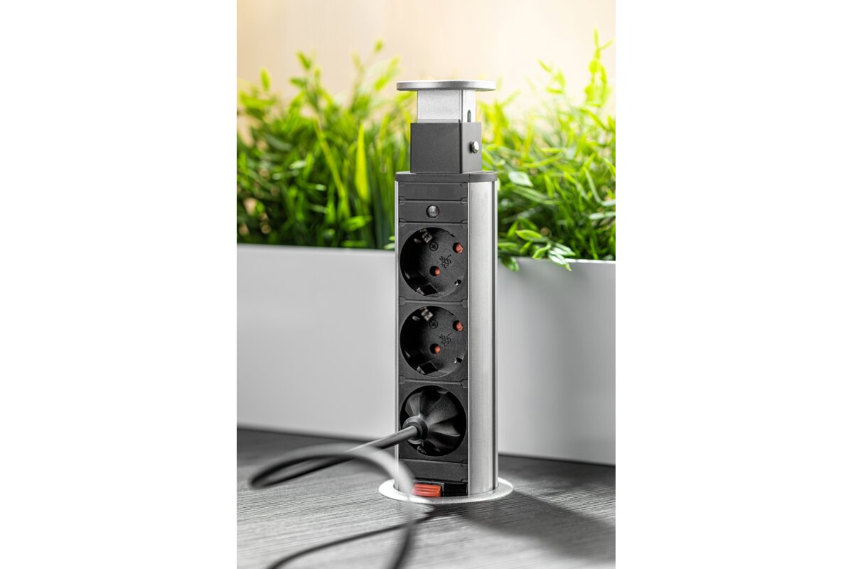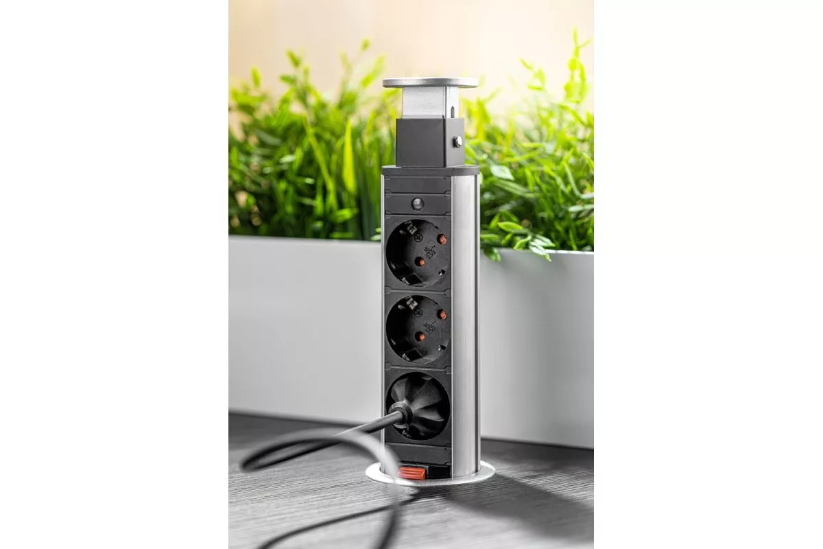 BIURKOWY PRZEDŁUŻACZ WPUSZCZANY 60mm, 3X SCHUKO (SREBRNY)