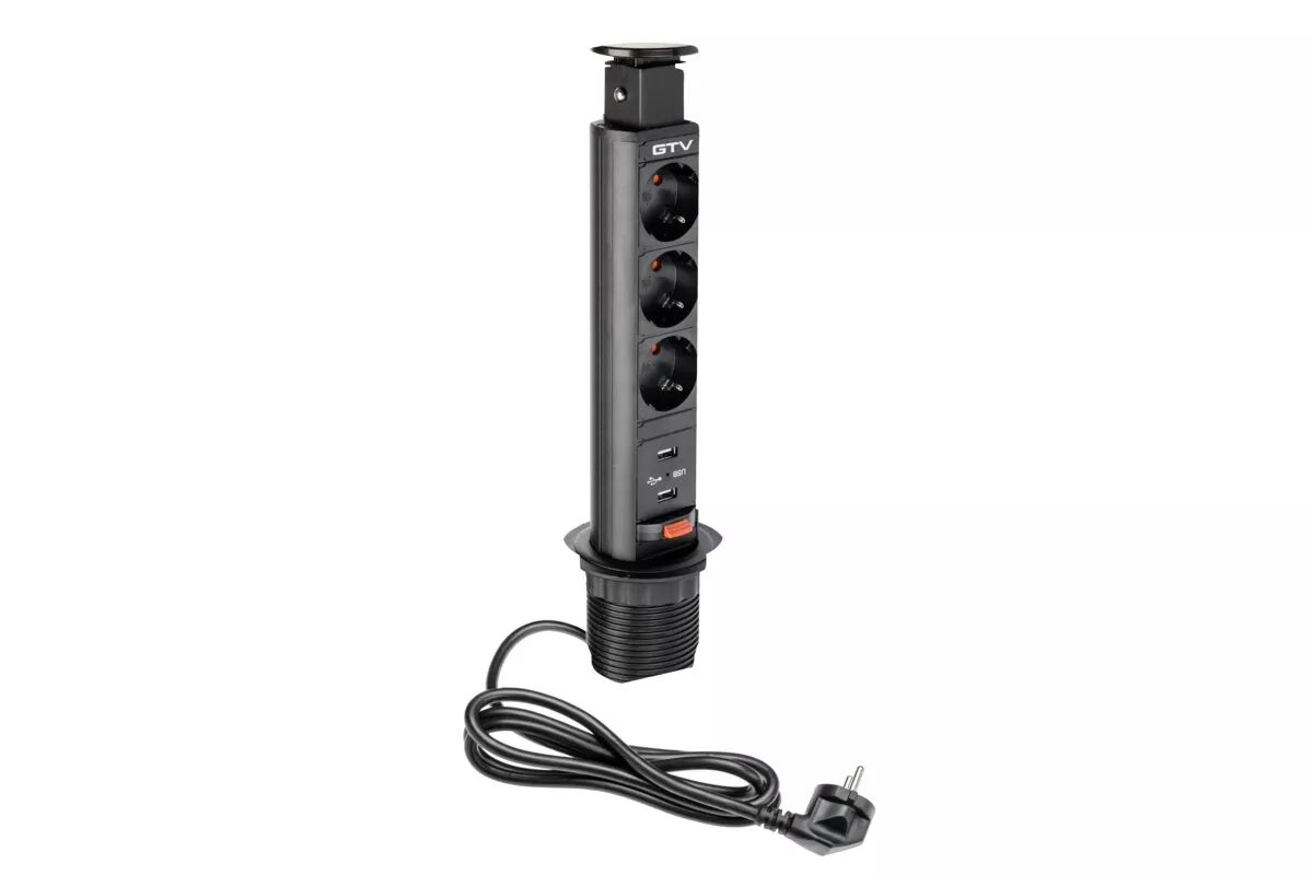 BIURKOWY PRZEDŁUŻACZ WPUSZCZANY 60mm, 3X SCHUKO, 2XUSB 2,1A 5V (CZARNY)