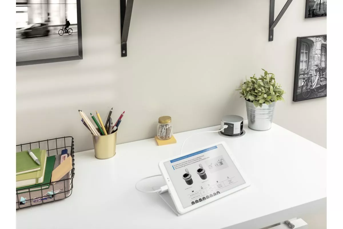 PRZEDŁUŻACZ BIURKOWY WPUSZCZANY COMFORT 100mm, 3X GNIAZDO Z UZIEMIENIEM, 2XUSB 2,4A,ALU, KABEL 1,5m