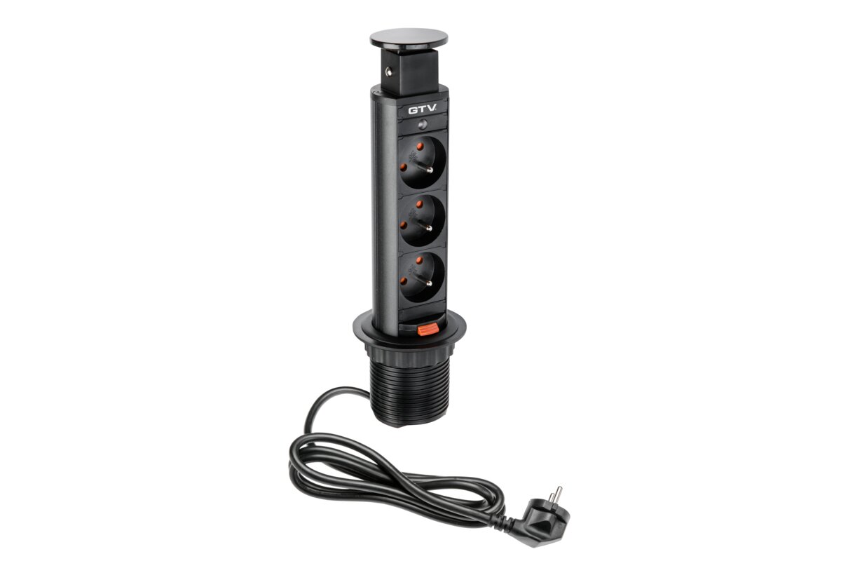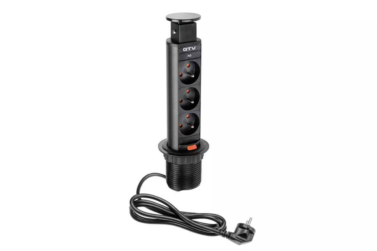BIURKOWY PRZEDŁUŻACZ WPUSZCZANY 60mm, 3X GNIAZDO Z UZIEMIENIEM (CZARNY)