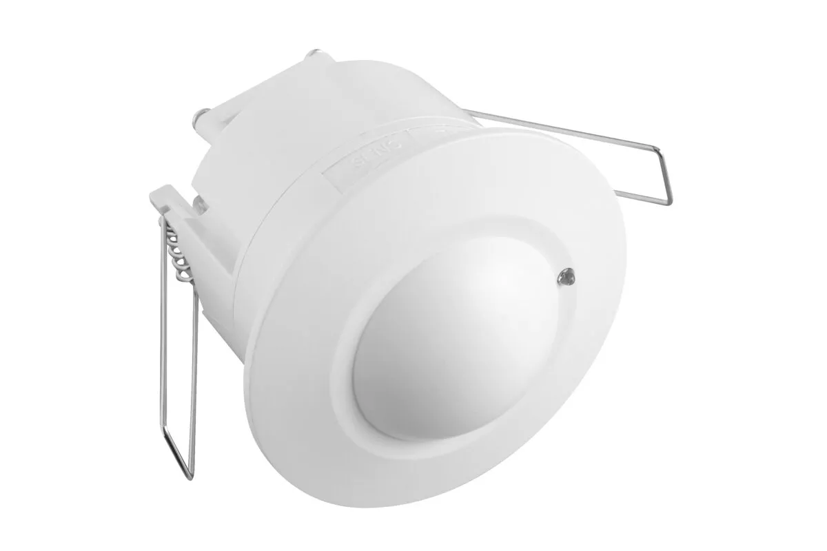CZUJNIK MIKROFALOWY RUCHU CM-5, max. 1200W, AC 220-240V, 50/60Hz, KĄT DZIAŁANIA 360*, ZASIĘG 1-8m ± 1,5- 3,5m, IP20, WSPÓŁPRACUJE Z LED, WPUSZCZANY, BIAŁY