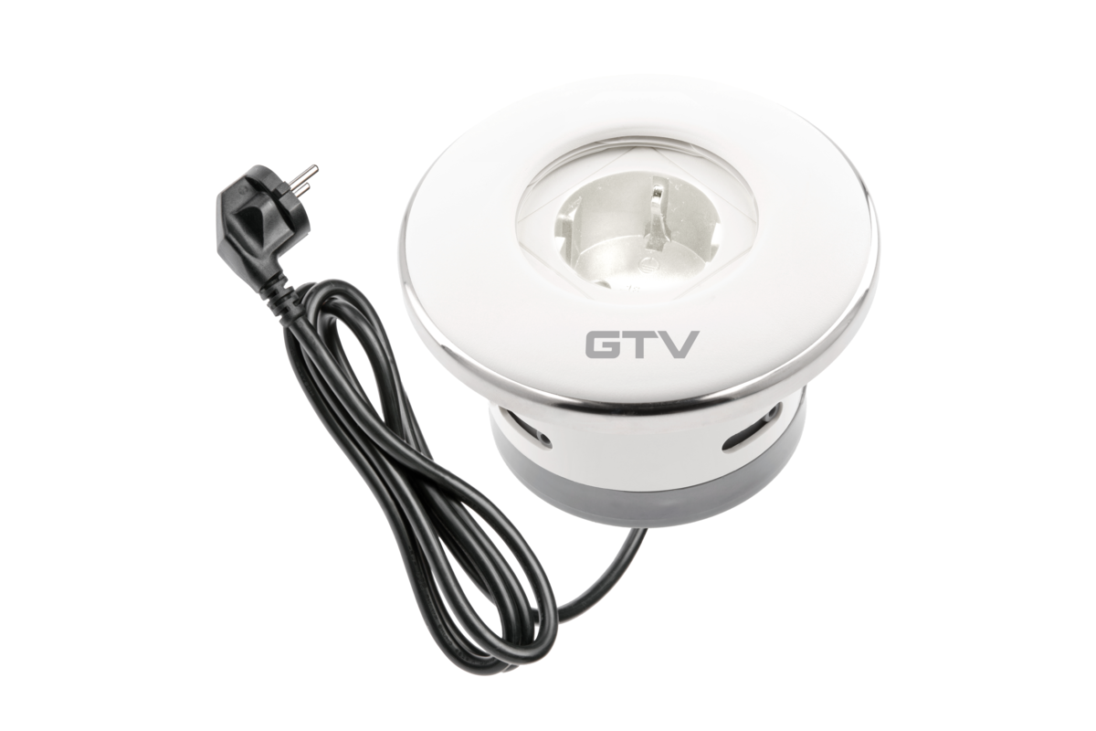 GNIAZDO MEBLOWE WPUSZCZANE Z PRZESŁONĄ SHUTTER, 1 GNIAZDO SCHUKO, 1,5m, BIAŁE