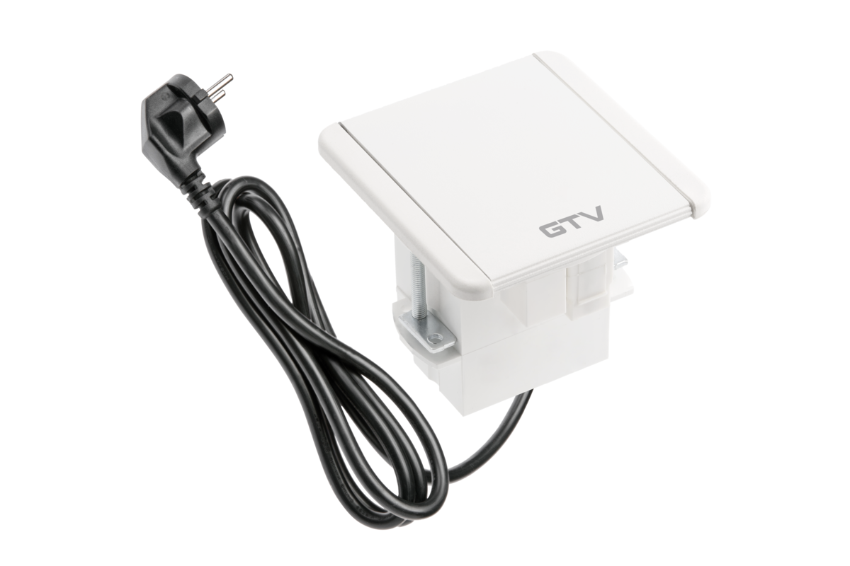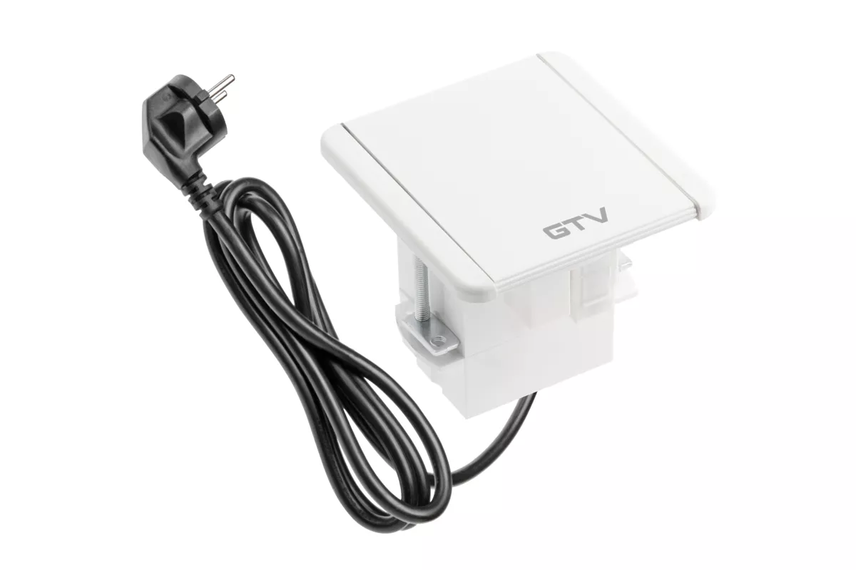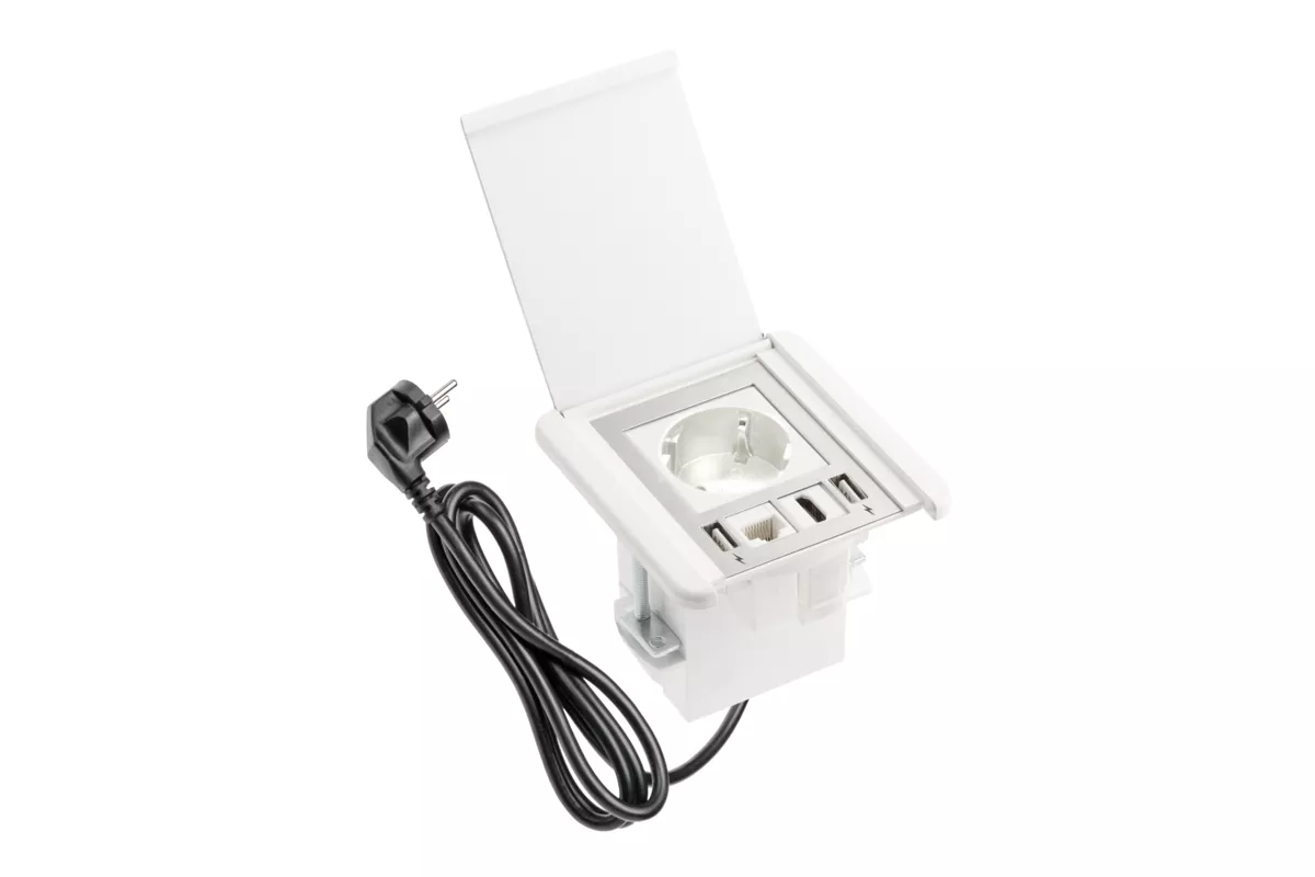 GNIAZDO MEBLOWE WPUSZCZANE Z PRZESŁONĄ FLIP, 1x GNIAZDO SCHUKO, 2xUSB A RJ45, KABEL 1,5m, CZARNE, BIAŁE