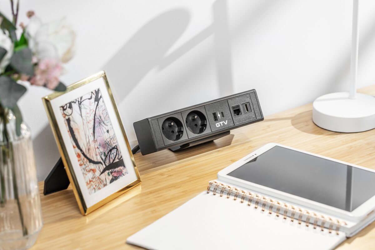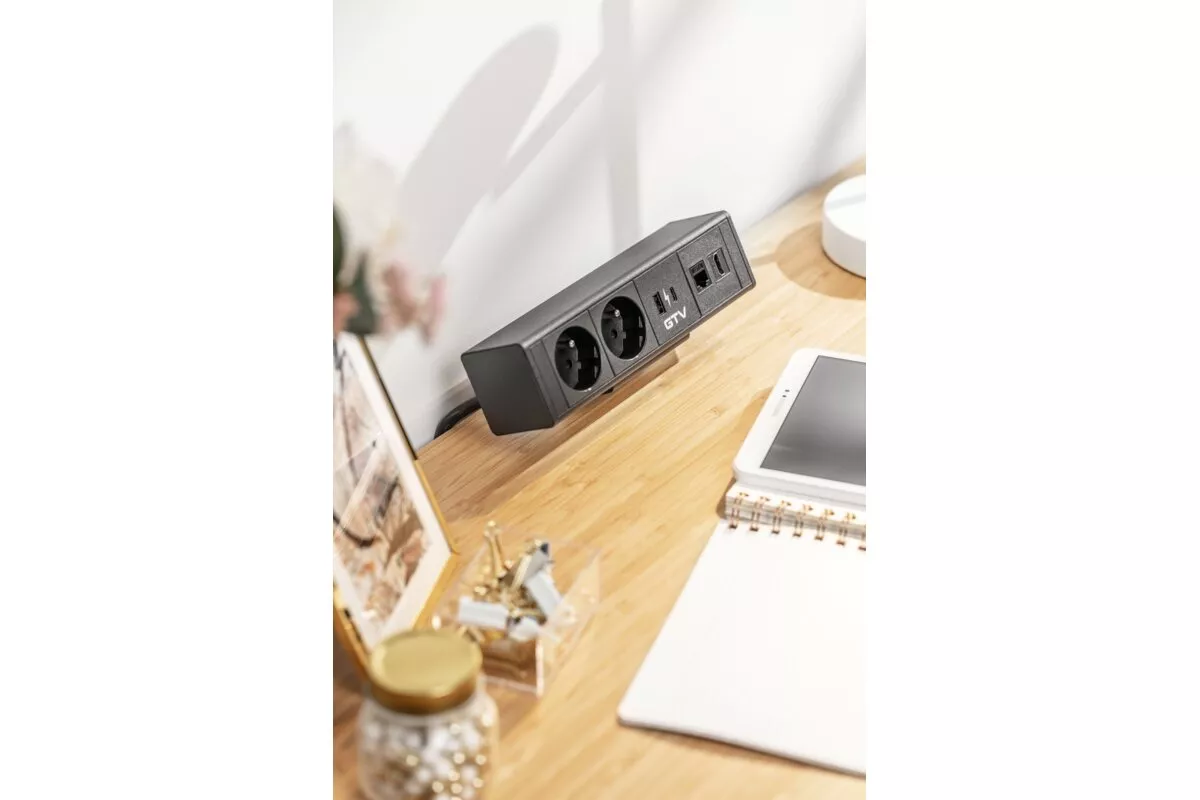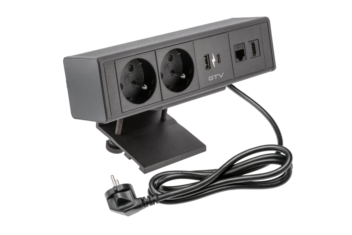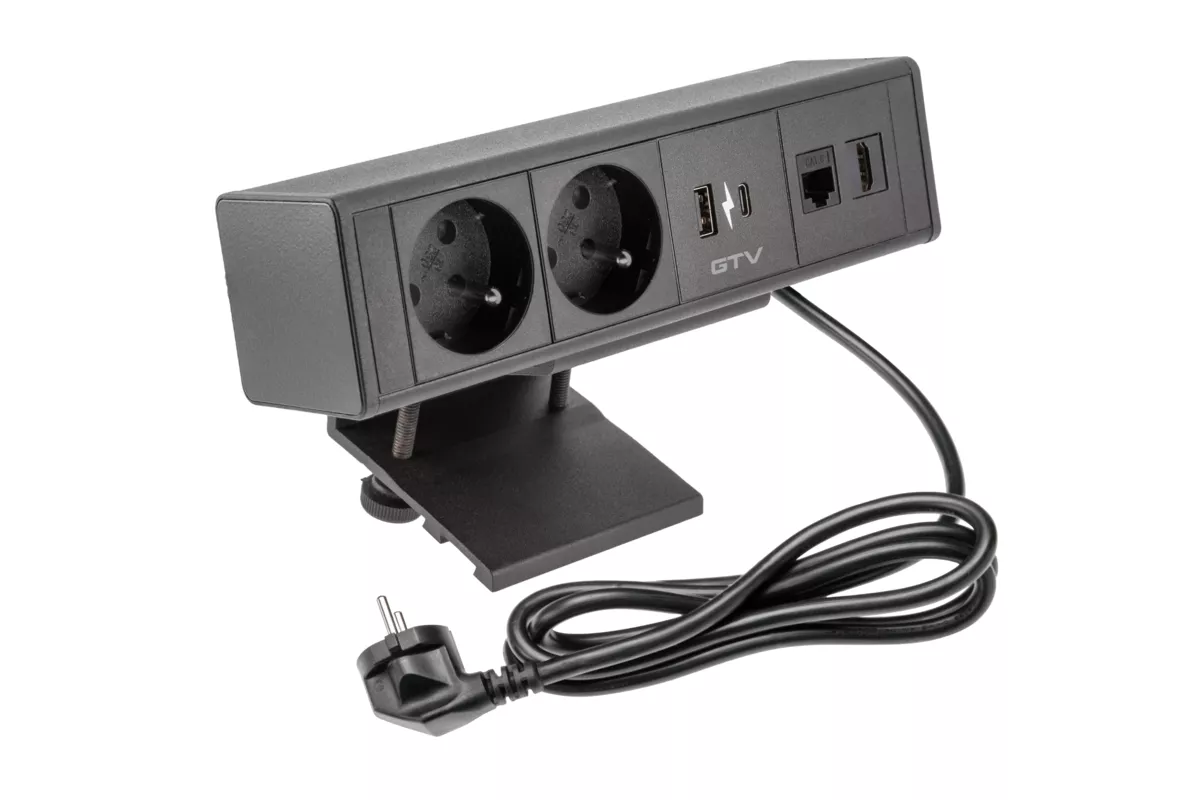 GNIAZDO MEBLOWE BAR, 2x GNIAZDO FRENCH, 1xUSB A, 1xUSB C. 1xRJ45, 1xHDMI, KABEL 1,5m, CZARNE
